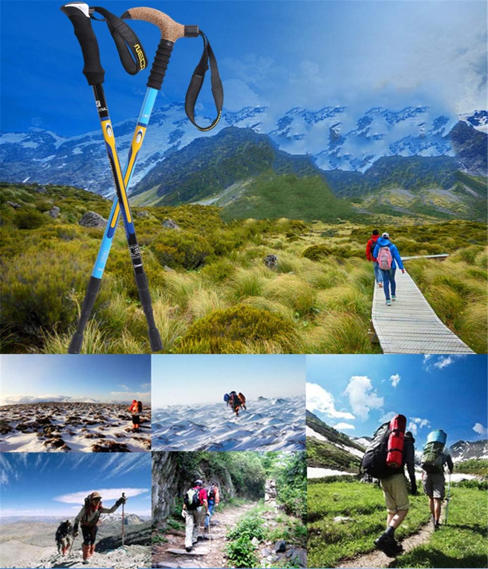 Why should trekking poles be purchased in pairs? Reduce stress on joints and muscles, reduce descent strength and reduce energy consumption. Avoid waist injuries and provide four stable grounding points. A good helper for mountaineering, improve walking speed and save strength Trekking pole with carbon fibre inner lock Rod material: aviation carbon fiber alloy Handle Material: EVA Foam/Cork /> Wristband: Adjustable double layer EVA inner Tip material: carbon tungsten steel Locking system: interior expansion lock Size: Shrinks 24" and Extends 53" Pole diameter: 16 /14/12 mm. Weight: 180g straight handle, 210g curved handle Performance description: ultra-light and high-strength carbon fiber rod, expansion lock system, safe and reliable, sturdy and durable Find answers in product information , Q&A, reviews