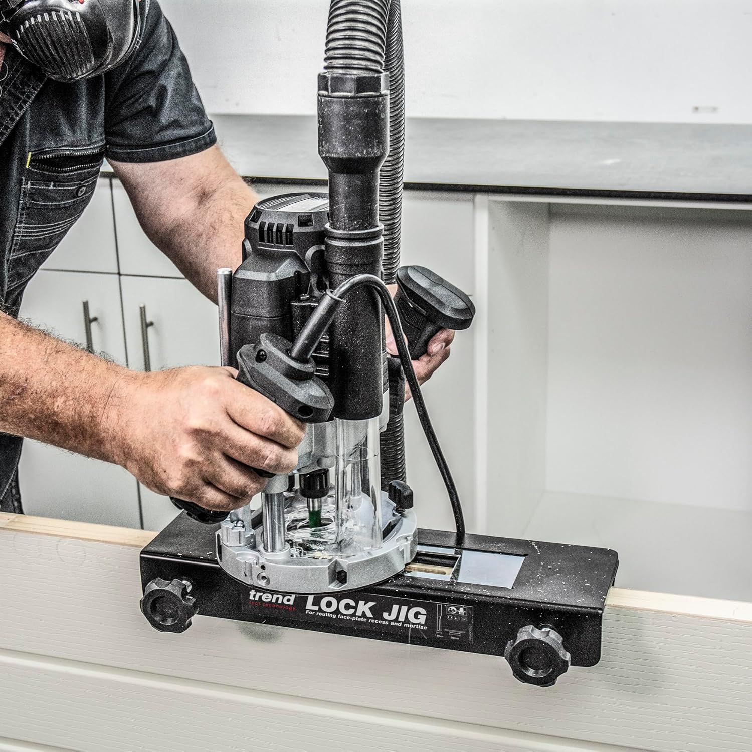 ACCURATE LOCK CUTTING: Cuts precise lock body and faceplate recesses for mortice locks, deadbolts, and tubular latches in wooden doors.ROBUST STEEL BUILD: Heavy-duty steel body with an adjustable fence fits doors from 1-5/16 to 2-1/4 inches thick for consistent, repeatable results.QUICK-RELEASE CLAMPING: Integrated clamps with non-marring pads hold doors securely without surface damage during routing.INCLUDES 20 TEMPLATES: Comes with interchangeable templates covering standard lock and faceplate sizes, plus a reference guide for quick selection.ROUTER SETUP REQUIRED: Use with 1/2 inch plunge router, 1/2 inch diameter cutter (63mm length), and 30mm guide bush for optimal performance.