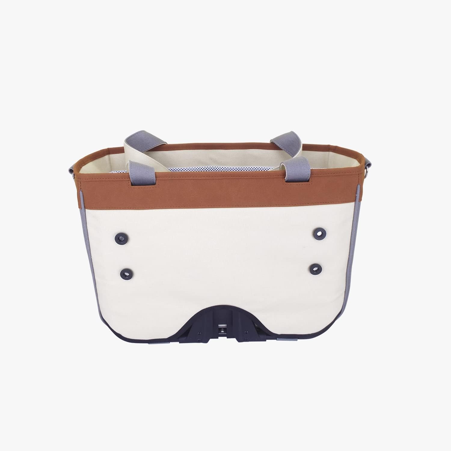 Introducing the dog basket, the perfect accessory for your pet friend on all your cycling adventures! With the inner rack, it can be easily mounted on a Brompton front block. Made from durable canvas material and equipped with a 10mm hollow aluminium tube inner support, this basket will keep its shape and protect your pet during the ride. The basket also comes with a detachable ABS hollow support board (measuring 5*175*200mm) for extra stability during the ride. It also features a pet-safe buckle, an anti-escape strap, and side ventilation holes for your pet’s comfort. With a front zipper pocket for storing your pet essentials and two sets of back buckles compatible with Monkii series products, you can easily add water bottles or small storage bags to the basket NOTE: water bottle clip (Monkii) is not included When you’re not cycling, the frame and inner support can be easily removed, transforming the basket into a handheld, shoulder or cross-body bag. Our bag is not just a pet basket, it’s also a versatile grocery basket with an expandable mesh to increase its capacity. Whether you’re taking your pet for a walk, commuting, shopping, or on a weekend cycling trip, the TRB2286 is ready for any adventure. Dimensions (approx.) 44 (W) x 31 (H) x 21(D) cm Capacity (approx.) 25 Litre Weight 1.7kg (with the frame) Outer Material Canvas Max Load 8kg Package: 1 x basket, 1 x carrier frame, 1 x adjustable shoulder strap, 1 x anti escape strap