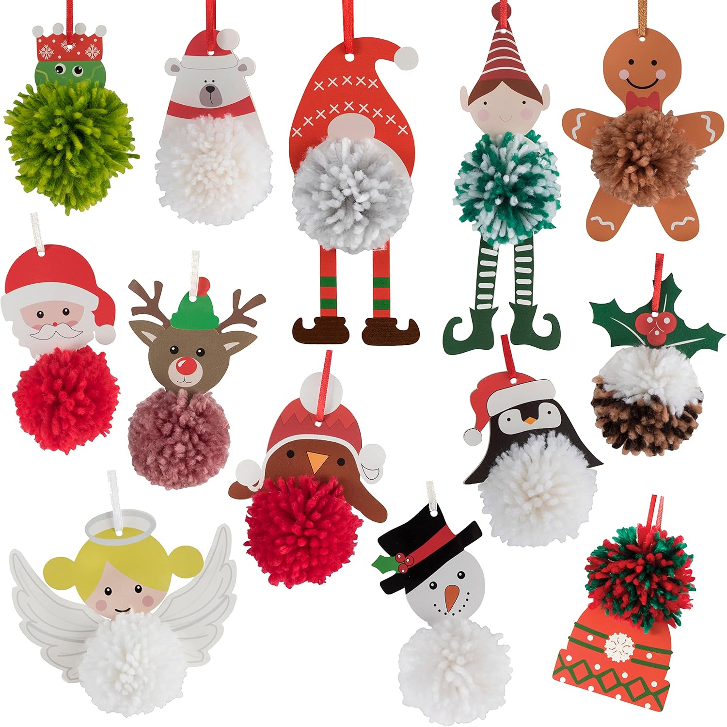 A fantastic range of pom pom decoration kits in fun designs. Suitable for beginners and younger crafters, these decorations are great for keeping kids busy. String them together to make a fun garland for a party or use on their own to add some colour to your home. Each kit includes: character template, yarn, ribbon and a plastic needle with simple instructions on the packaging.