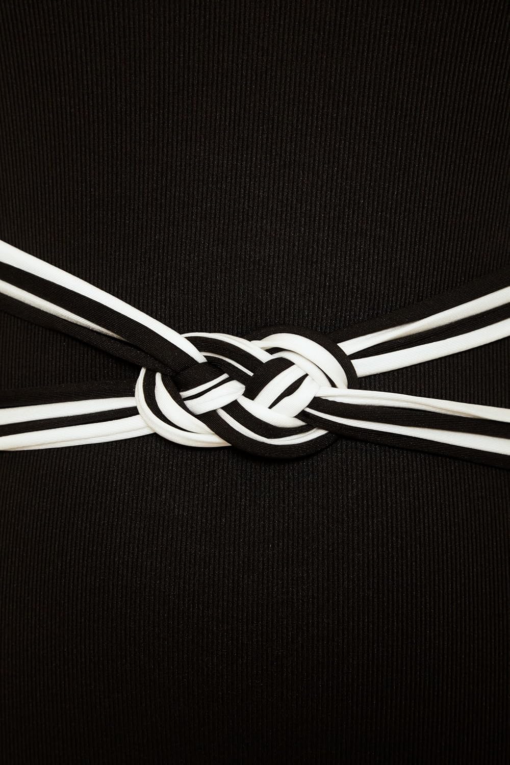 The Trina Turk Triumph Braided One Piece Swimsuit delivers bold sophistication with a sporty twist. Designed with a flattering V-neckline, high leg cut, and open back, this suit combines beach-ready style with supportive structure. A waist-defining knot belt accentuates your shape, while the contrast white trim and colorblock piping create clean lines that flatter every curve. Crafted from a luxe blend of 88% Nylon and 12% Spandex, the ribbed texture offers soft structure and flexibility for a sleek, supportive fit. Adjustable spaghetti straps provide a personalized feel, making it ideal for curvy women or those needing a big bust swimsuit that still feels light and feminine. Whether you're packing for a tropical vacation, selecting honeymoon outfits, or choosing a standout piece for your summer beachwear collection, this one piece swimsuit for women blends comfort, confidence, and elevated swim style. A stunning addition to any trajes de baño para mujer wardrobe, it's perfect for beach wear, poolside lounging, or even a modern bride bathing suit moment.