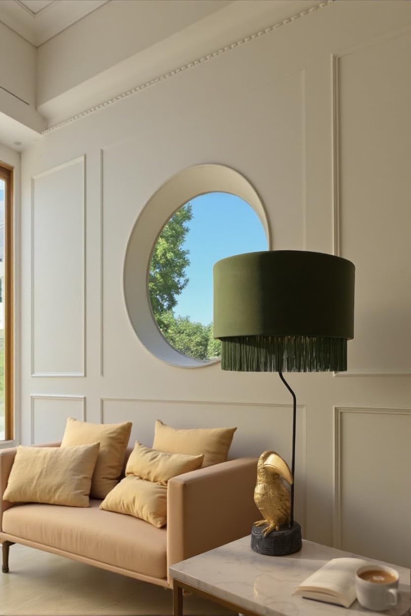 Add a touch of timeless elegance to your home with this velvet drum lamp shade, designed with a refined fringe detail and a rich, textured finish. The luxurious look and versatile style make it the perfect complement to a wide range of lamp bases, while its striking presence ensures it becomes a statement centerpiece in any room. Please Note: This lamp shade arrives fully assembled. To ensure it reaches you in perfect condition, we recommend ordering it separately from other items to minimize the risk of damage during shipping.