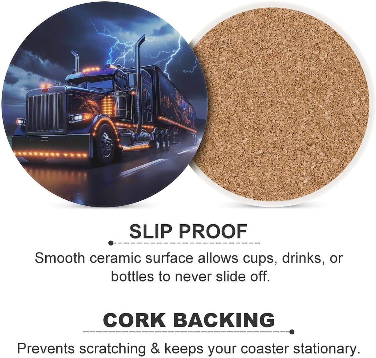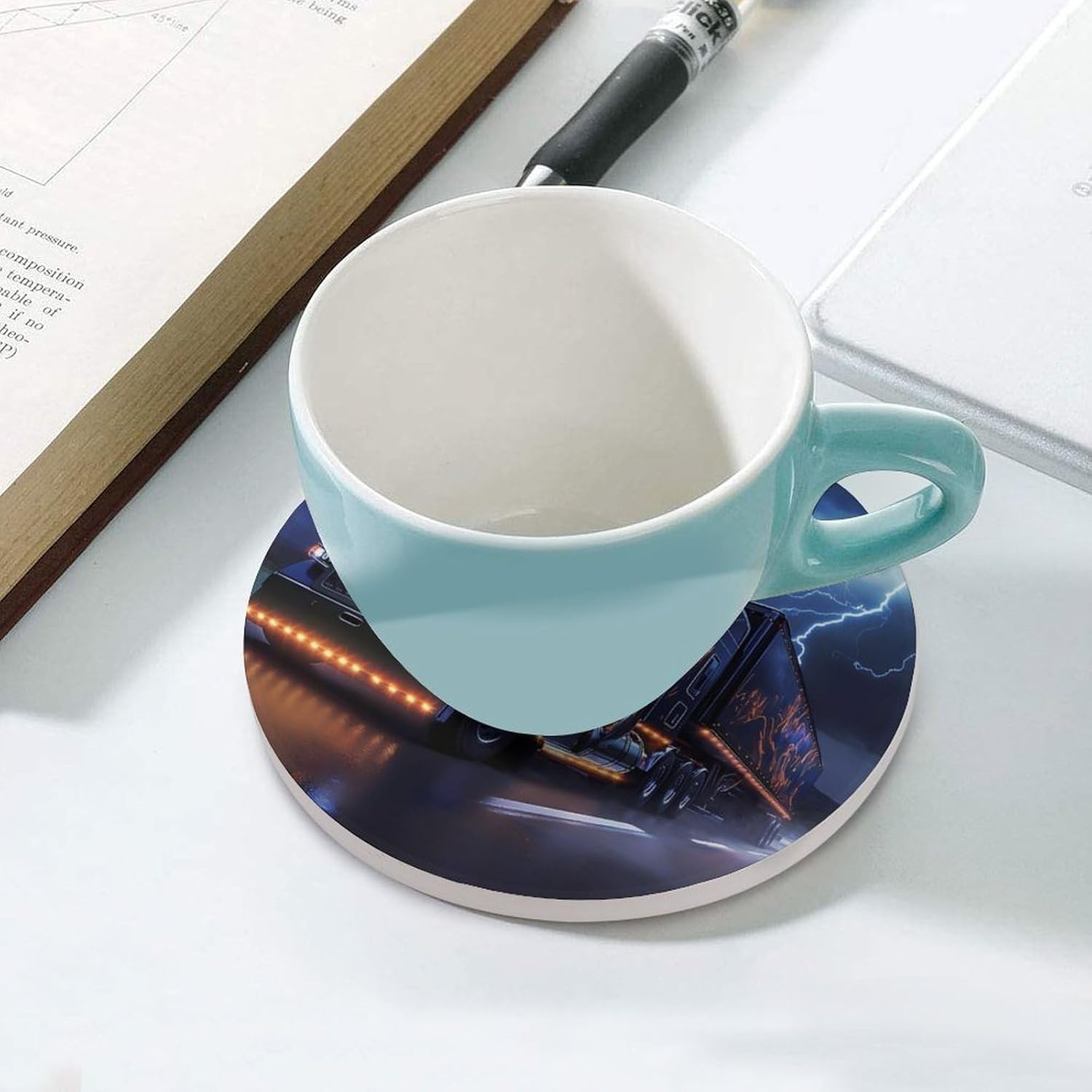 Cute Printed Round Drinks Absorbent Ceramic Coaster with Cork Base Suitable for Kinds of Mugs, Cups, Prevent Tabletop Wear And Scratches, and is Easy to Clean