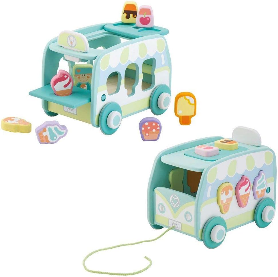 A plug-in game, ideal for developing hand ability and learning colours and shapes. The design is extraordinary and imprinted on the popular ice cream van, with simple shapes without edges, easy to grasp. The item also has a cord to keep it with you wherever you go.