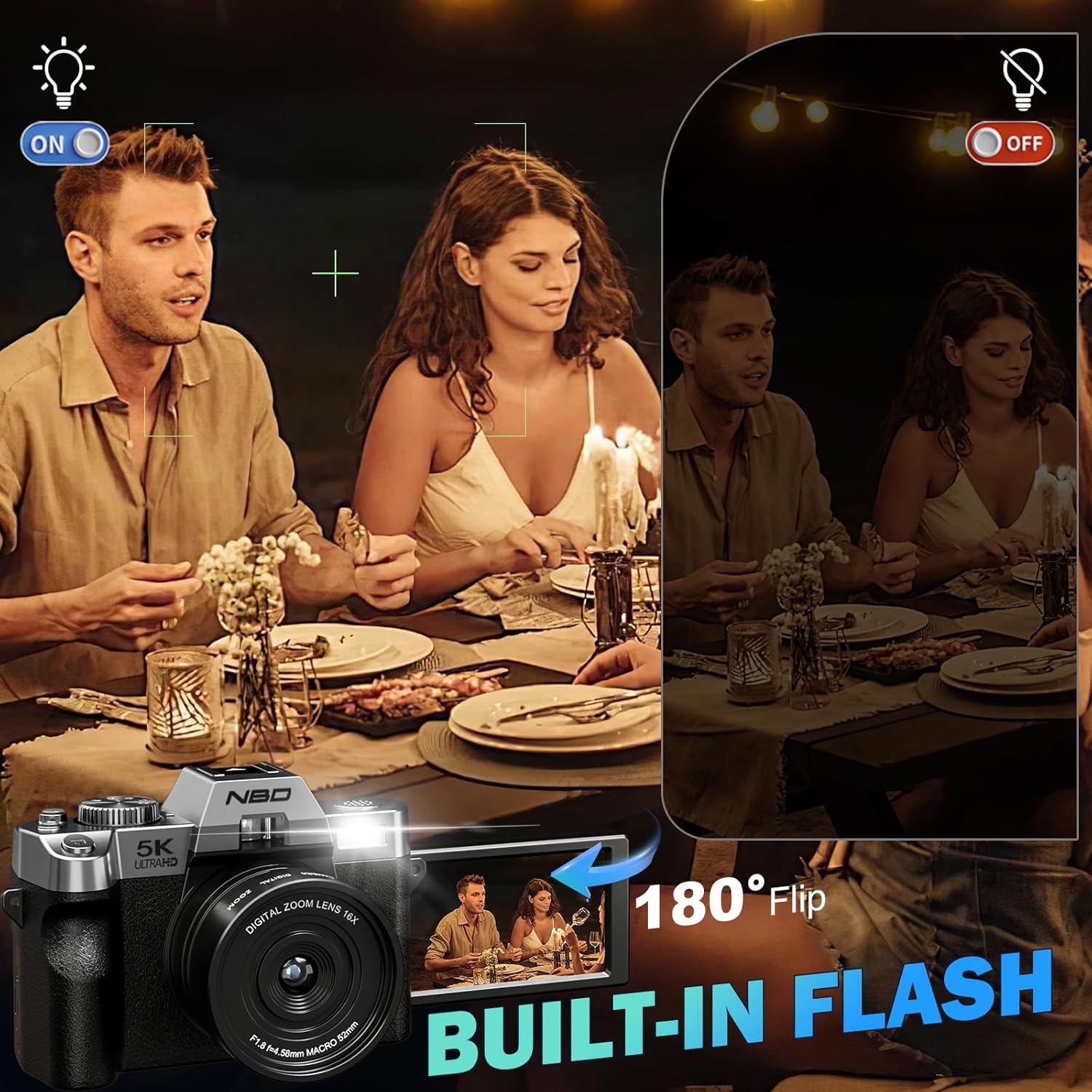 | Flash Modes | Auto, On, Off |