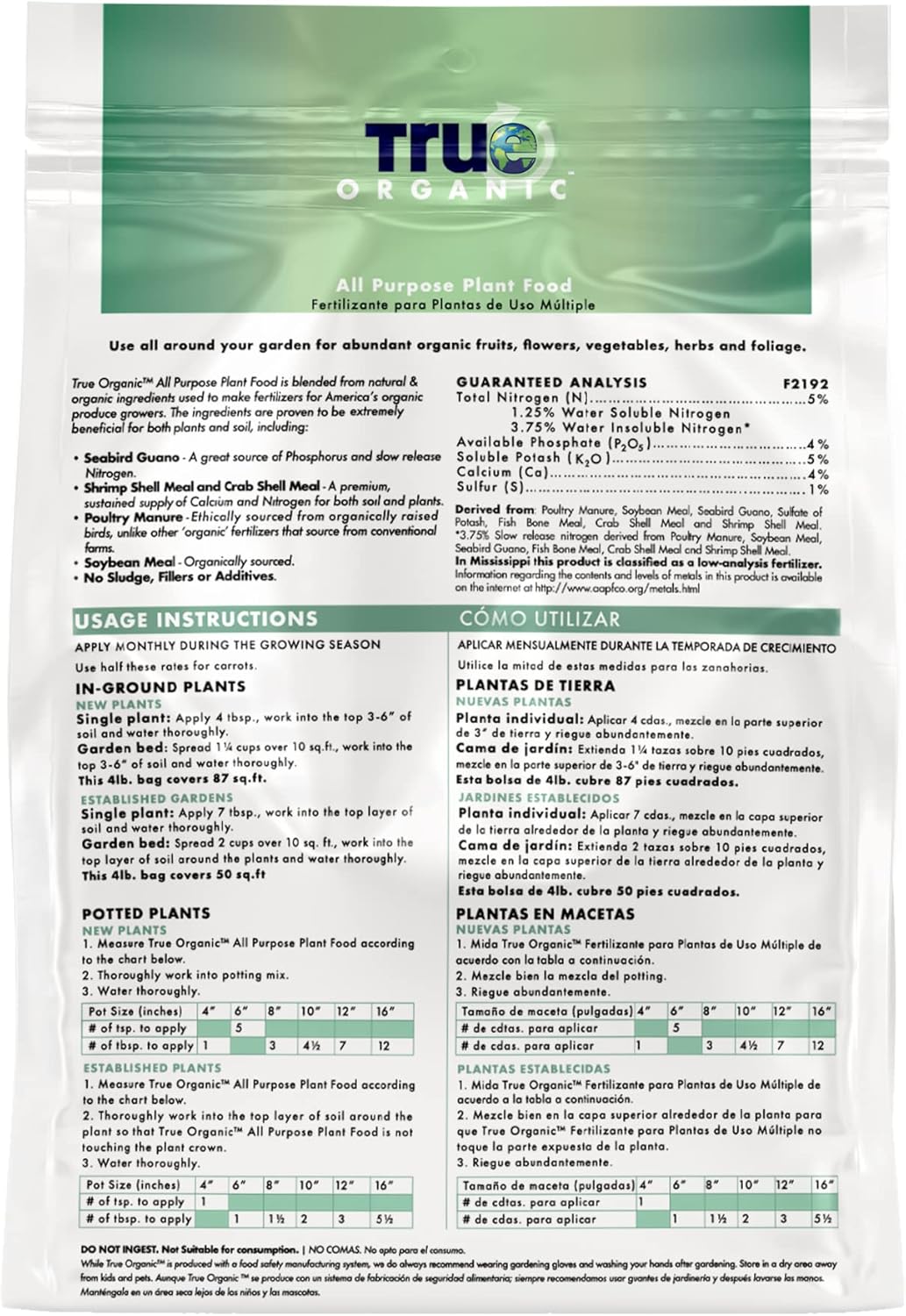 | Item Type Name | True Organic All Purpose Plant Food – Organic Fertilizer for Fruits, Vegetables, Flowers, and Herbs – 12lb Bag Covers 261 sq. ft. |