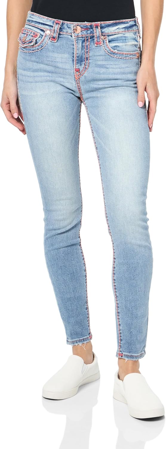 We are loving (and you will too) the Jennie Super T Curvy Skinny Jean. This pair of women's jeans features a mid-rise waist, whiskering, subtle fading, and multi-tone pink and white Super T stitching. Finished with rose gold hardware and horseshoe detailing on the back flap pockets.