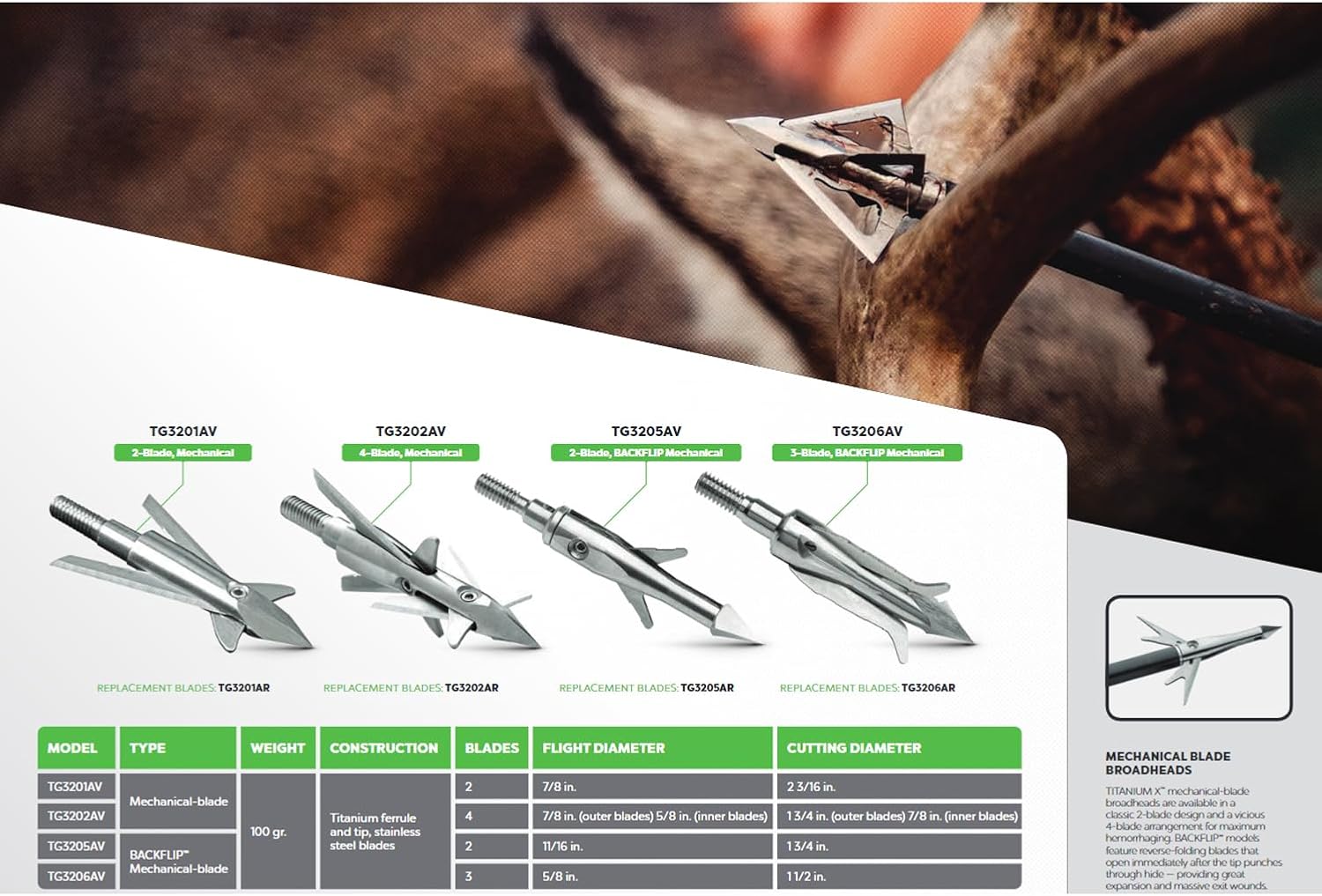 | Included Components | TITANIUM X BACKFLIP Mechanical Broadheads |