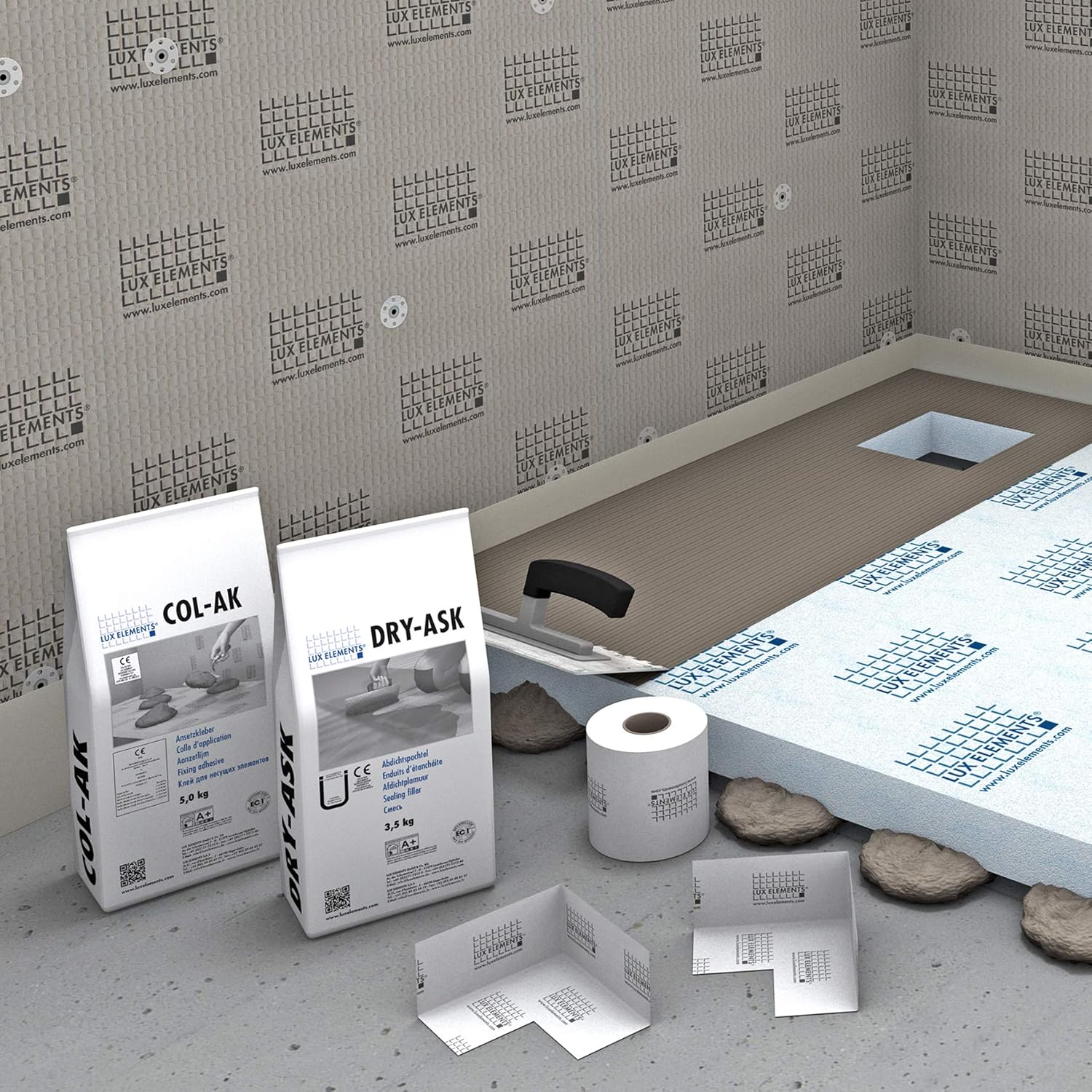 • Necessary mounting material for processing and sealing for Lux Elements shower floors with point or line drain in one set
