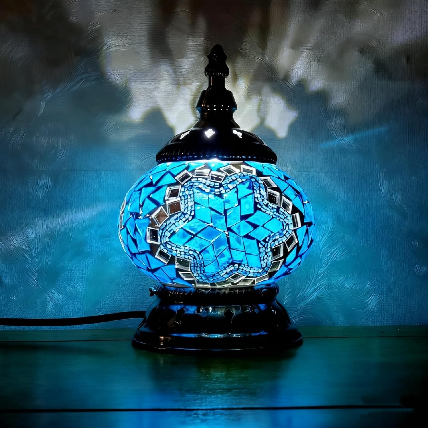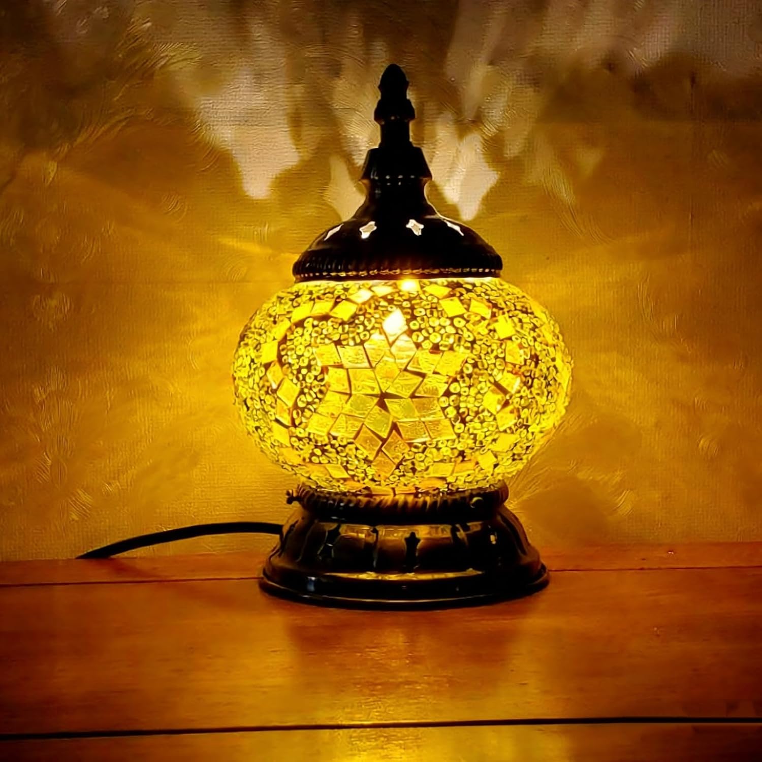 Atmosphere Building Maimeili Mosaic Turkish Table lamp instantly enliven the joyous atmosphere, become the visual focus of commercial decor or party settings , and capturing creative photographic moments.About our Vintage LampsOur lights mainly composed of high-quality glass, energy-efficient LED bulb and a power cord with a length of 120CM/47.2IN.Unique Style It combines the rich Turkish style. The blue and yellow mosaic pattern on the lampshade, paired with the retro metal base, replicates the classic elements of the Ottoman Empire. Power supplyOur lamp uses a USB connector, which can be directly connected to a power source using an adapter, or connected to your computer, or even to your power bank. Package contentMosaic Turkish Table lamp*1 .