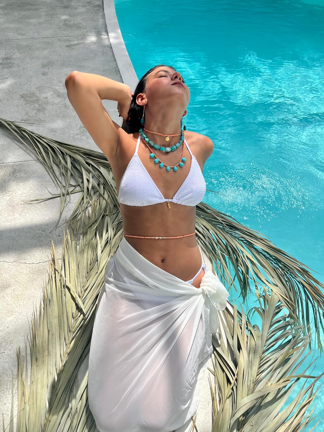 This stunning turquoise teardrop statement necklace brings coastal elegance to any outfit. Featuring vibrant turquoise teardrop pendants beautifully contrasted against warm orange coral beads, this handcrafted piece captures the essence of seaside charm. The necklace measures 22.5 inches long and showcases a sophisticated design that works perfectly for layering or wearing alone as a bold statement piece. Crafted with 18K yellow gold plated stainless steel accents and a secure toggle clasp, this women's boho necklace combines durability with style. The coastal-inspired color palette of turquoise and coral evokes sun-soaked beaches and tropical getaways, making it an ideal accessory for resort wear, summer gatherings, or adding a pop of color to your everyday wardrobe. Part of the Coastal Charm collection, this versatile necklace transitions effortlessly from casual daytime looks to evening ensembles, bringing a touch of bohemian flair wherever you go.
