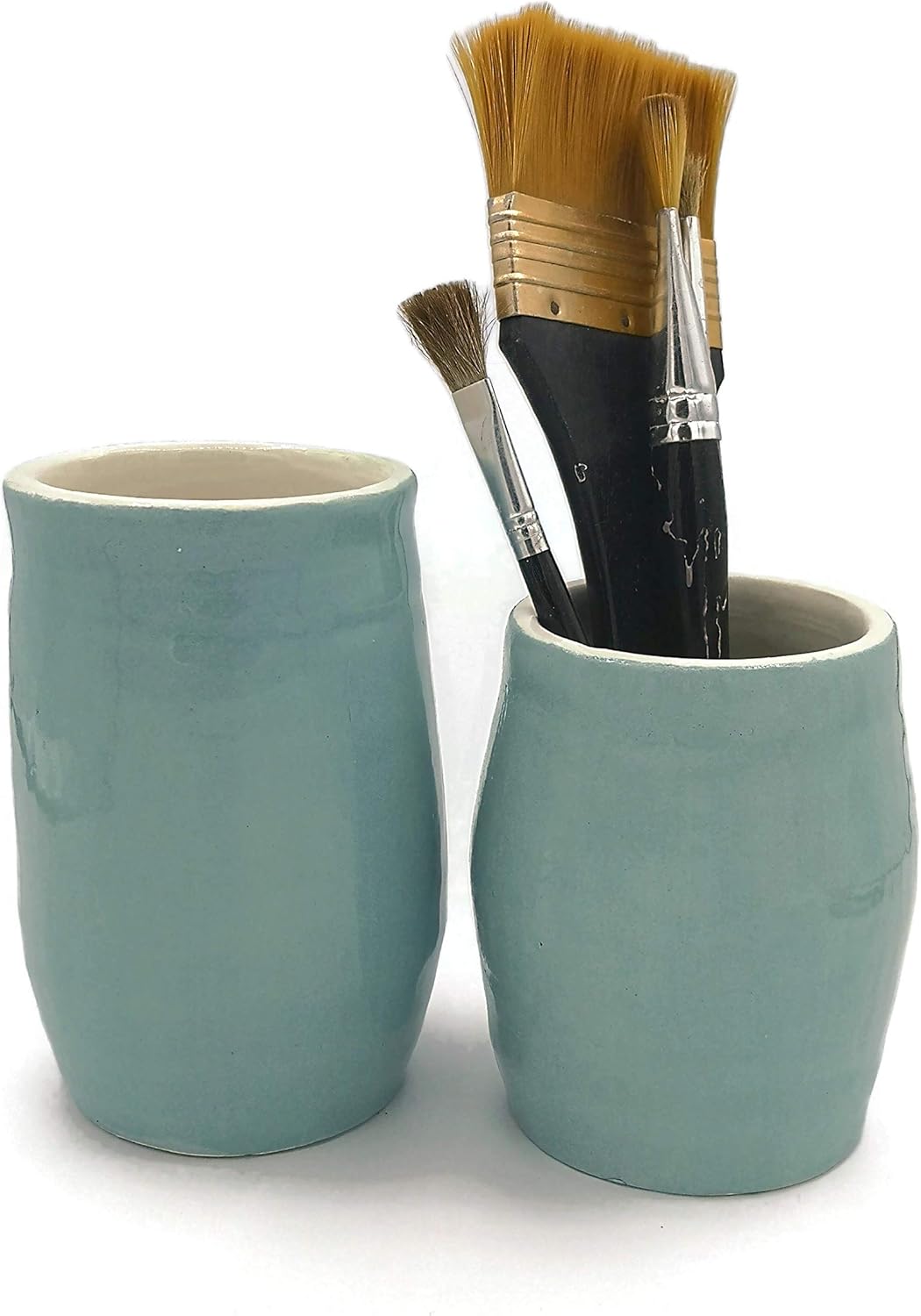 Turquoise Ceramic Planter with Drainage, Crock Cutlery or Utensil Holder This eye-catching handmade ceramic utensil holder with drainage is versatile and totally unique! Perfect as a gift, this white and blue vase would look great in every home decor! It can be used as a cutlery holder or a tall planter, either indoors or outdoors. This small vase can also be used as a utensil holder, either in the kitchen or in a studio. It has been fired at a high temperature and will keep its deep color. I made this vase on potter's wheel! The materials used were: clay, and a lovely, glossy, transparent glaze. A really interesting piece of Portuguese pottery! This handmade ceramic pot measures: 8cm wide (3.2inches), and 12cm tall (4.7inches).. ** EXTRA INFORMATION: My purple clay pot is kiln fired, glazed and refired for durability. All materials are lead-free. Handwashing is recommended (it will not discolor). Each pot is handmade and unique.