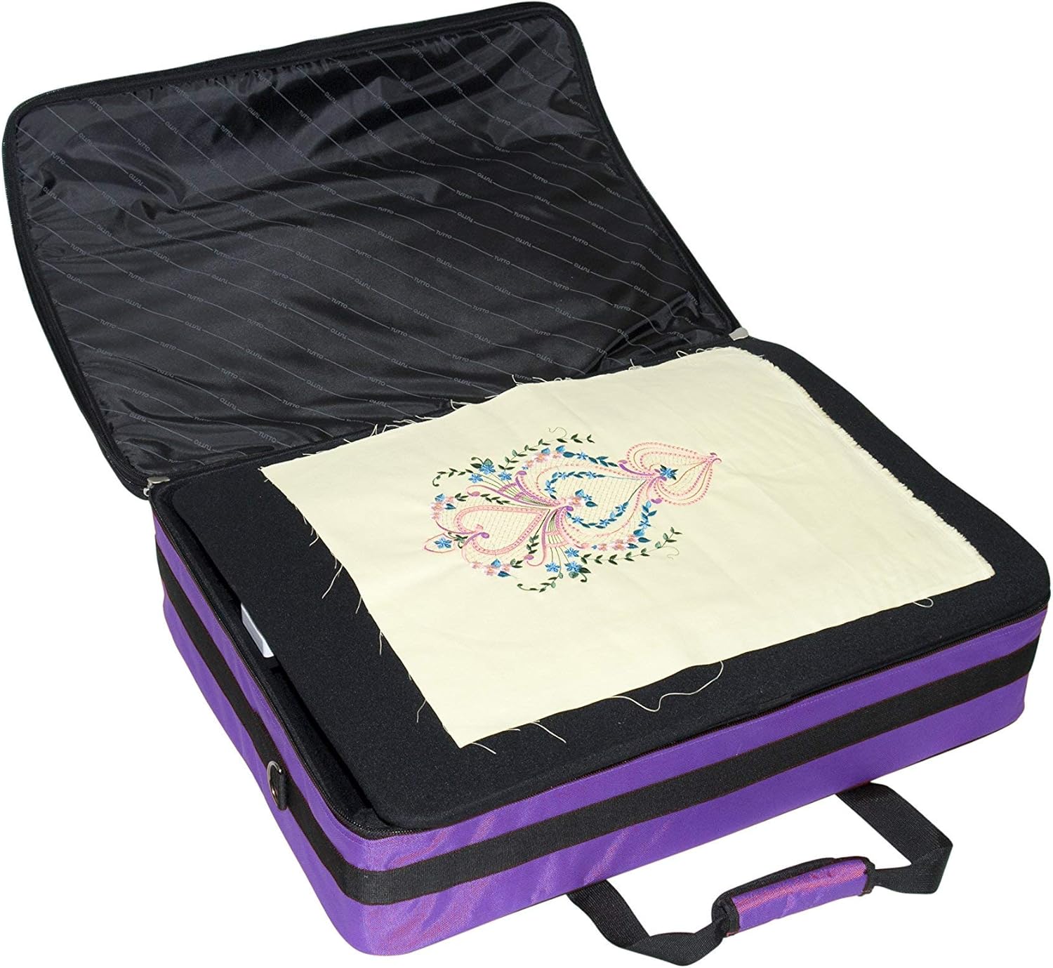Tutto embroidery machine bag XL. Dimension: 28in L x 22in H x 6in d (exterior) 27in L x 21in H x 5.5in d (interior). compatible machines: baby lock: Destiny, brother: the dream machine xv8500d, Pfaff: creative vision