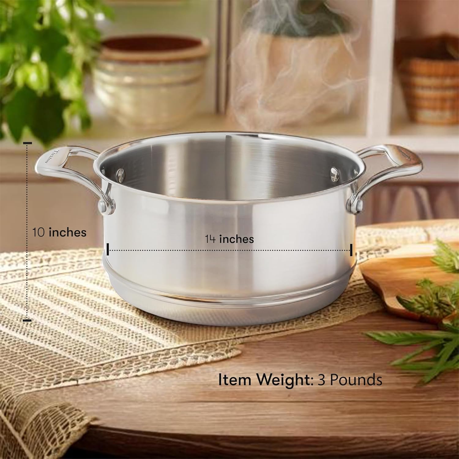 • Cool Grip Handle: Solid stainless steel riveted handle stays cool on the stovetop.