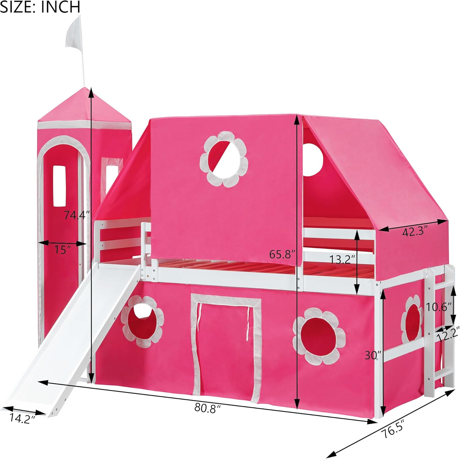 | Other Special Features of the Product | Loft Bed with Slide,Tent and Tower, windows, Guardrail and ladder |