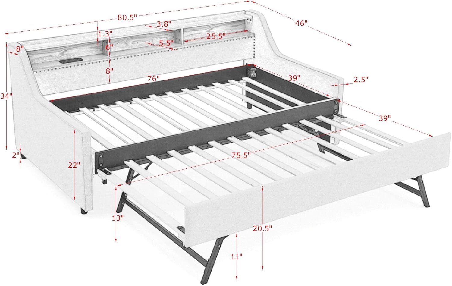 | Frame Material Type | Wood Frame With Metal Trundle Mechanism |