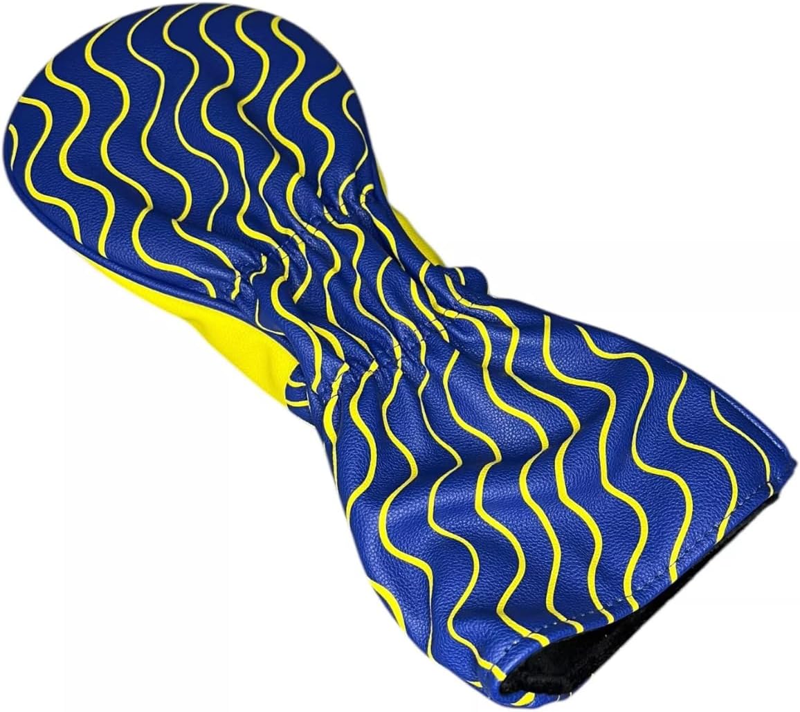Protect your driver in style with this eye-catching Twisted Tea golf club head cover. Featuring the iconic yellow and navy blue color scheme of the popular hard iced tea brand, this head cover combines functionality with fun. The durable construction helps shield your club from dings and scratches, while the distinctive wavy pattern on the lower portion adds a touch of flair to your golf bag. The bold Twisted Tea logo and sun emblem make this accessory instantly recognizable on the course. Designed to fit most standard drivers, this head cover is a perfect way to show off your preferred beverage choice while keeping your golf equipment protected. The vibrant colors and quality materials ensure both durability and visibility, making it easy to spot your club in any golf bag.