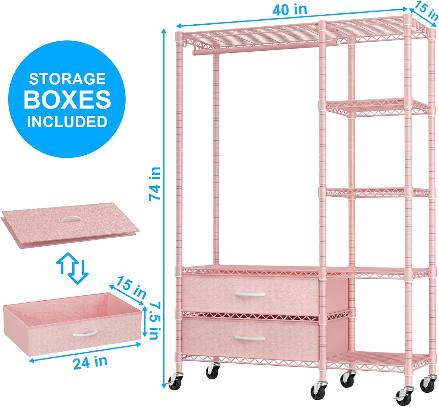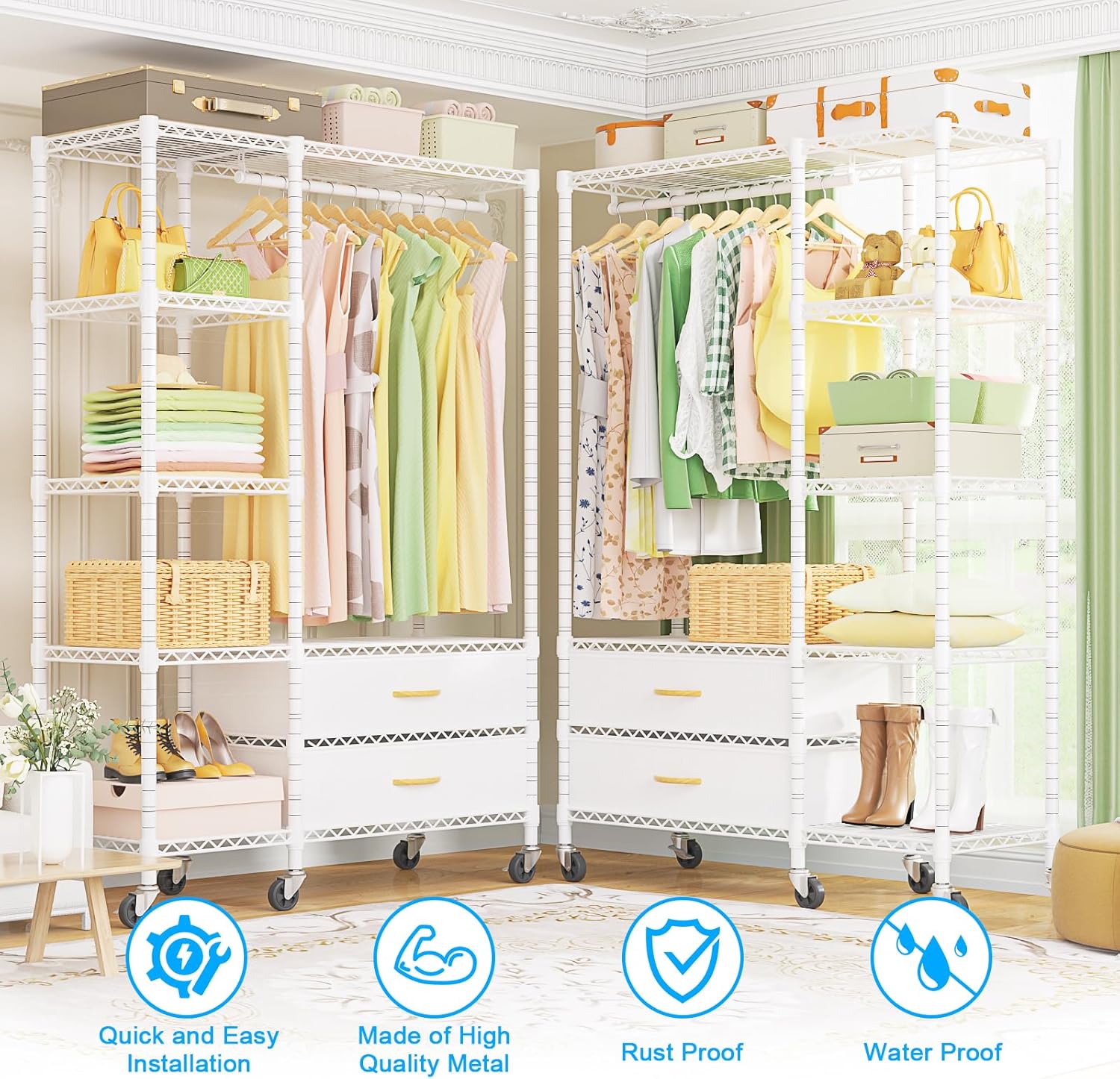 | Included Components | 3*Six-sleeved Large Shelf,1*Large Shelf,2*Small Shelf,6*Lower Pole,6*Upper Pole,1*Hanging Rod,2*PP pad,2*Hook Bracket & Screw,62*Plastic Clips,4*Plastic Hooks,2 Sets*Anti-tip Device,2*Drawer & Bottom Board,2*Wooden Handle,4*Screw,1*Allen Wrench |