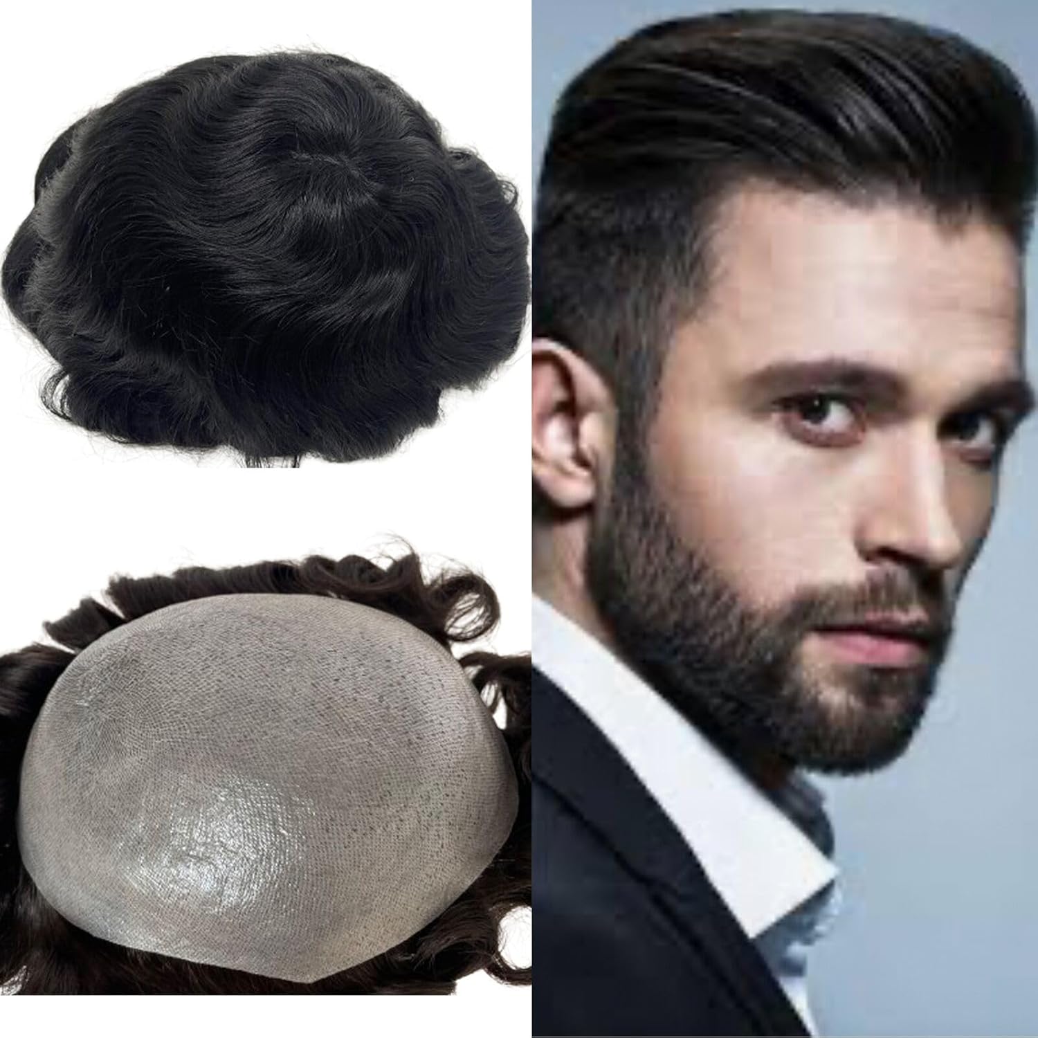 Introducing the Ultimate Men's Hair Replacement System Say goodbye to hair loss worries with our Ultra-Thin Skin Men's Toupee. Crafted with precision and care, this hairpiece is designed to provide a natural, undetectable solution for men experiencing thinning hair or baldness. Whether you're heading to a formal event, hitting the gym, or simply enjoying a day out, this toupee will boost your confidence and style. Key Features: Natural Hairline: The V-looped front hairline and bleached knots create a realistic appearance, blending seamlessly with your natural hair. The ultra-thin 0.03mm PU base ensures the toupee looks like it’s growing directly from your scalp. Premium Quality Hair: Made from 100% European human hair, this toupee is soft, smooth, and easy to style. It’s tangle-free, shedding-free, and can be straightened, curled, or trimmed to achieve your desired look. Customizable Fit: The 8x10 inch base size is suitable for most head shapes and can be trimmed to fit perfectly. The 6-inch hair length offers versatility, allowing you to create various hairstyles effortlessly. Wide Range of Colors & Densities: Available in multiple colors, including medium brown with 20% gray hair, and densities ranging from light to medium. This ensures a natural look that matches your hair type and preferences. Comfortable & Durable: The thin PU skin base is lightweight, breathable, and durable, making it comfortable for all-day wear. It’s easy to attach with tape or glue and can withstand daily activities like swimming, sports, and outdoor adventures. Why Choose Our Toupee? Confidence Boost: Regain your confidence with a hairpiece that looks and feels like your natural hair. No one will know you’re wearing a toupee! Versatile Styling: Whether you prefer a sleek, professional look or a casual, wavy style, this toupee can be styled to suit any occasion. Easy Maintenance: Designed for hassle-free use, this toupee is easy to clean, style, and maintain. It’s perfect for men who want a low-maintenance hair solution. Perfect for All Occasions: From weddings and parties to sports and outdoor activities, this toupee is your go-to solution for looking your best in any situation. Order Now and Transform Your Look! Don’t let hair loss hold you back. With our Ultra-Thin Skin Men's Toupee, you can enjoy a natural, stylish, and comfortable hair replacement solution. Click "Add to Cart" today and take the first step toward a more confident you!