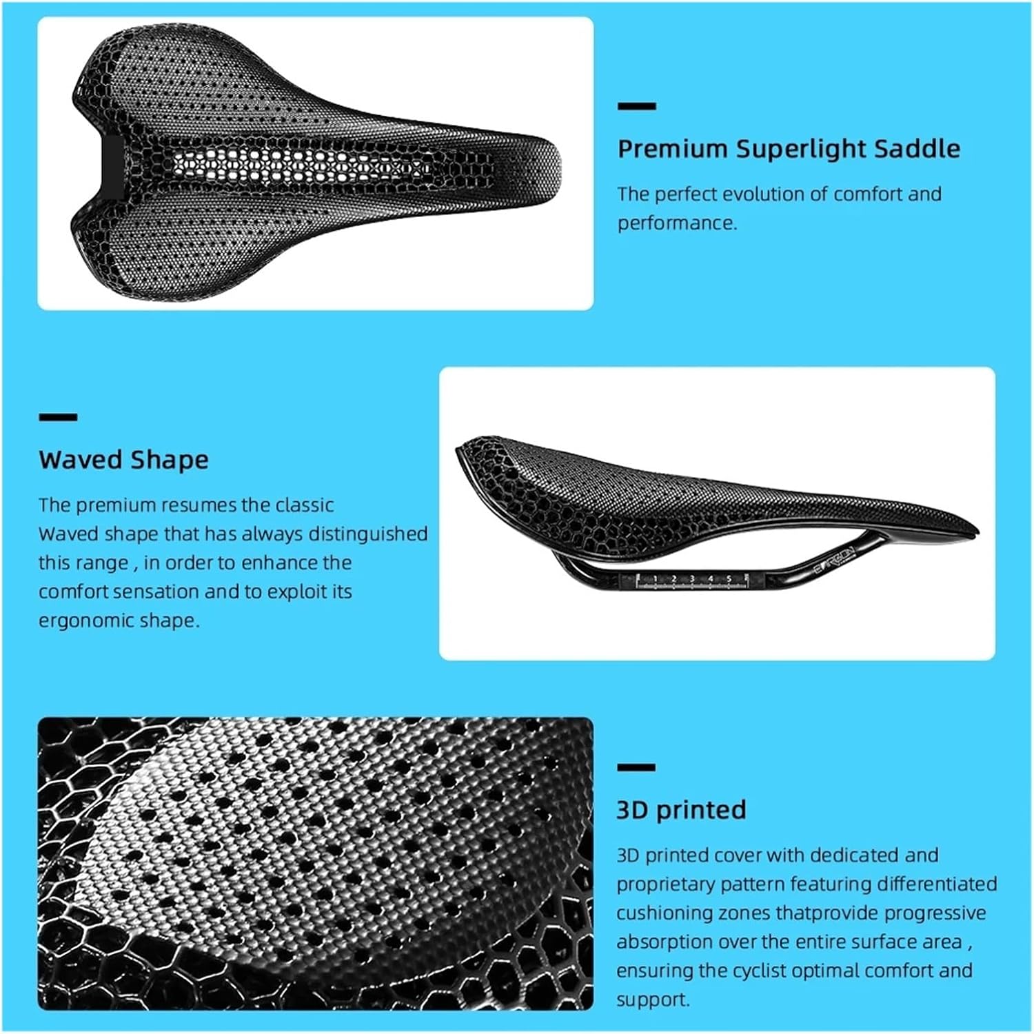 • 3d Printed Saddle|Ryet Saddle|Ultralight Carbon Fiber:Crafted from high-strength T800 carbon fiber, this saddle weighs a mere 175g, ensuring a lightweight yet robust ride.