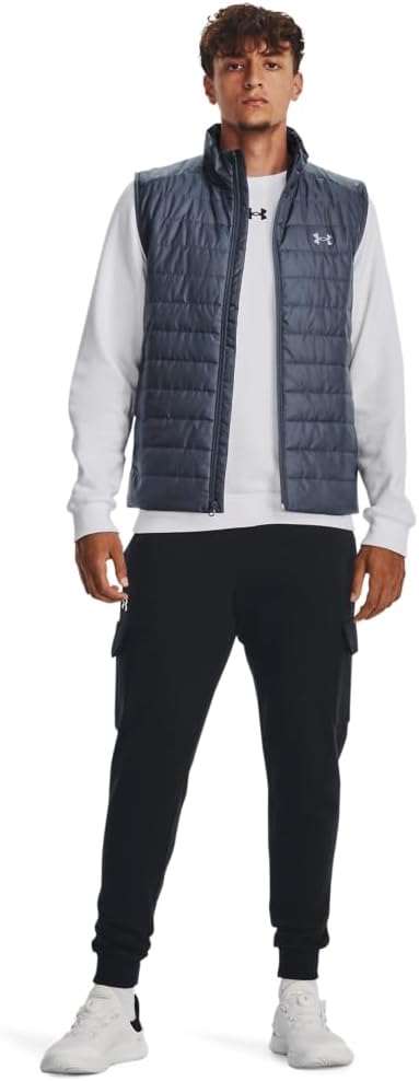 UA Storm technology repels water without sacrificing breathability. Lightweight woven fabric delivers superior comfort & durability. All-over 80g synthetic insulation for lightweight warmth without any excess bulk. Secure, zip hand pockets. 100% Polyester.