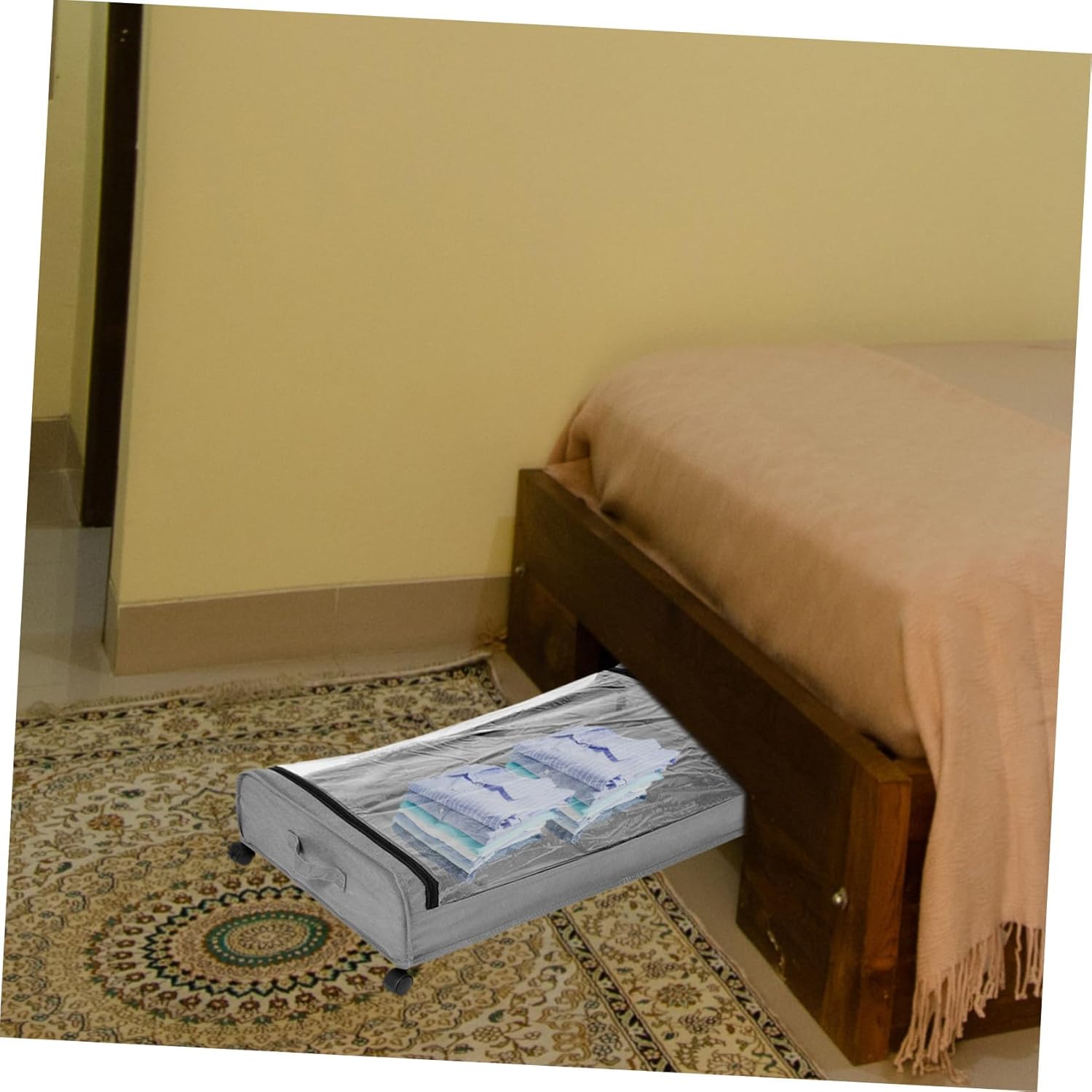 Package Include 1 x under bed storage cart Characteristics -Material:Iron, plastic, fabric under bed storage cart - Color: Grey bed storage organizer - Size: 80.00X44.00X13.00cm/31.44X17.29X5.11in under bed storage - Adopting sturdy materials, the under bed clothes drawer will not deform or break easily, , can be used long time large under bed storage. - Under bed organizers is easy to move around due to the wheel design, a great for small bedrooms or apartments clothes organizer. - use the under-bed space, this under bed storage cart makes the room more tidy and spacious space saving storage. - Such under bed clothes drawer can store clothes, shoes, , books and other items, meeting different storage needs storage bin with wheels. - The under bed storage cart is easy to access, simply slide them out under your bed when you need something under bed drawers on wheels.Goods Descriptionunder bed storage containers Adopting sturdy materials, this under bed cart has excellent durability and practicality, which will meet your needs very well.bedroom storage Still looking under bed storage cart for home sundries storage and organization? Our under bed storage container will be your unmissable choice