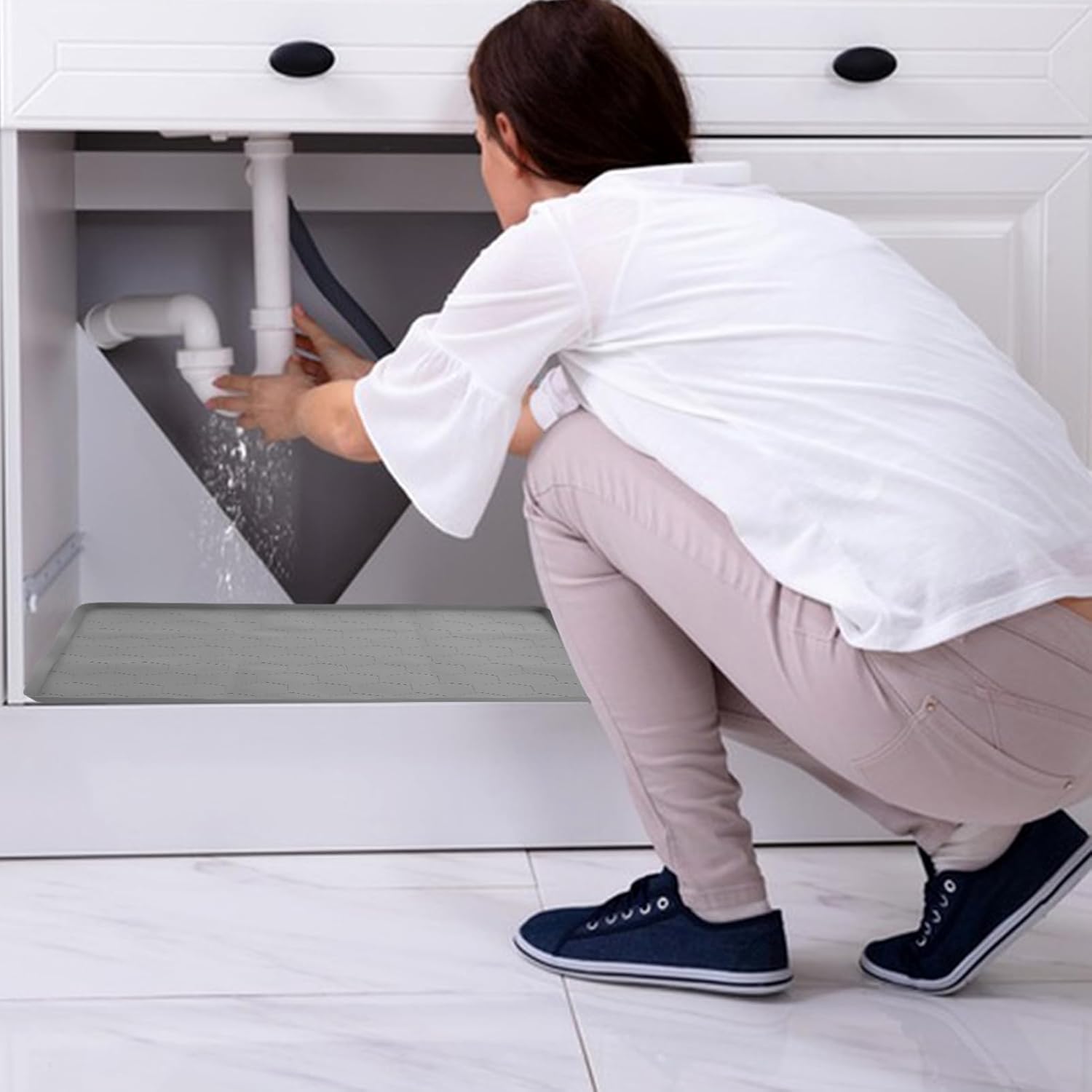Package List 1 x Under Sink Mat Features -Material:Rubber waterproof mat -Sound absorption: minimizes the noise from dish and utensil impacts, contributing to a quieter kitchen atmosphere silicone baking mat - waterproofing: keeps your kitchen countertop dry and clean by preventing water leaks from the sink under sink protector -Size:60.00X60.00X2.00cm/23.58X23.58X0.79in undersink mat -Color:Grey boot mat -Multipurpose design: suitable for kitchen sinks and washing machine tops, it reduces vibration and noise, protecting your appliances and floors silicone placemats - construction: crafted from material, it offers reliable protection and remains intact over time pastry mat -Generous dimensions: the size for covering a wide range of sink sizes and washing machine tops kitchen sink matGoods Informationhot pads for countertops Whether you're dealing with a leaky faucet or simply want to prevent water damage, this mat is the .countertop mat The sleek color complements any decor, while the material long-lasting use.pastry mat Not only does this sink mat protect your surfaces, but it also adds a touch of style to your kitchen.under sink protector It's also easy to clean – just wipe it down with a damp cloth to keep it looking new