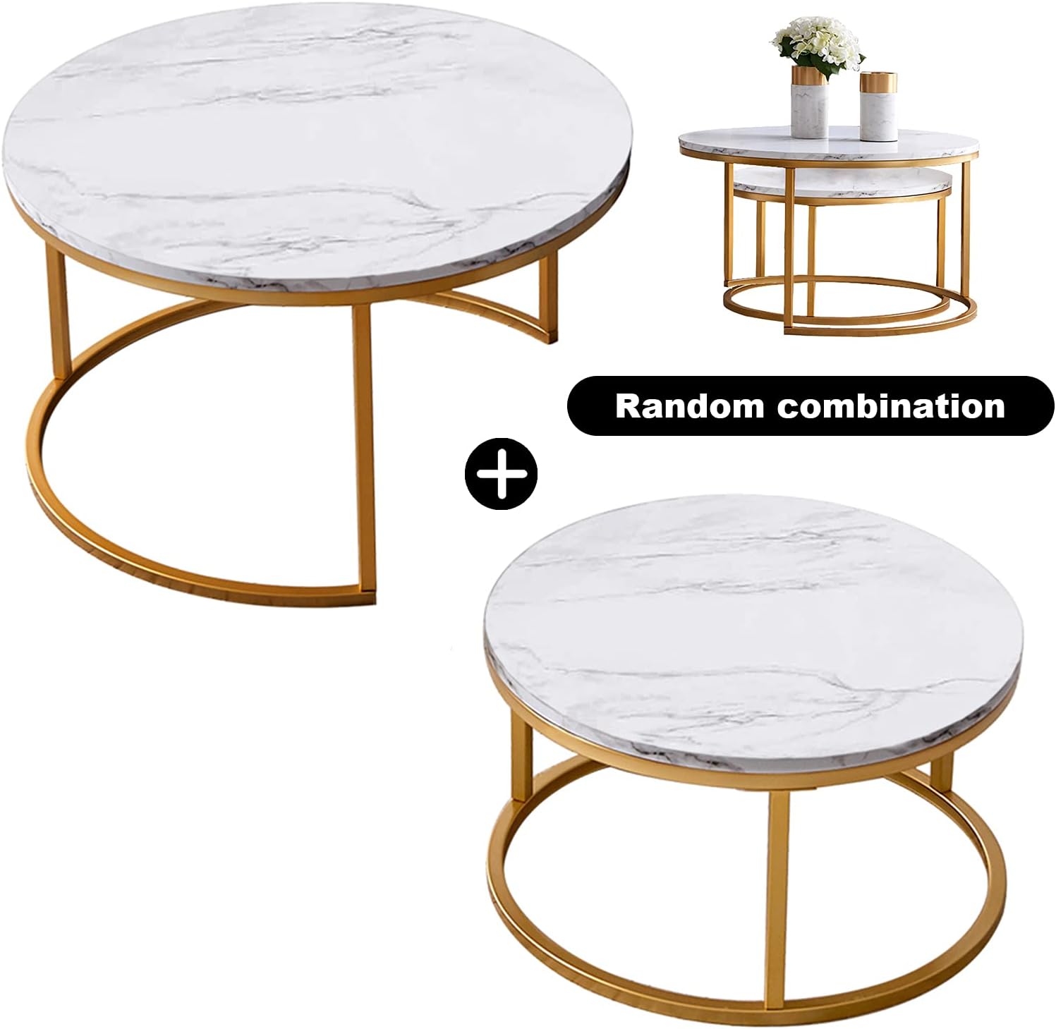 Highlights : - You can separate the round coffee tables and have one as a cocktail table and one as a side table. - The design of the round-base connected with the metal legs can ensure the maximum stability of the coffee table. Specifications : - Material : Wood+Metal- Size : 31. 5x31. 5x18inch(Big); 23. 5x23. 5x13inch(Small)Package Content : - 1 Set Nesting Coffee TableNotes : 1. Manual measuring, please allow 0. 5-2cm error, thank you. 2. Color may vary due to different monitors.