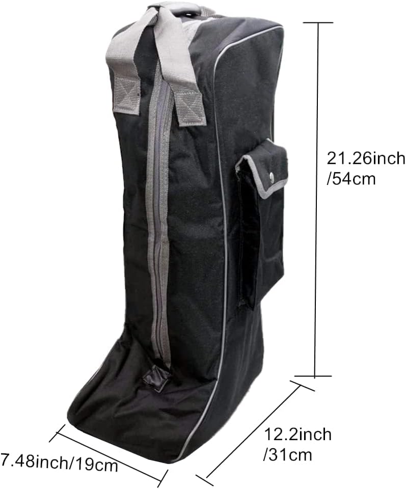 UNISTRENGH Professional Equestrian Tall Boots Carry Bags Durable Horse Riding Boots Bag for Storage Kicks Boots, Tall Field Boots, with Shoulder Strap and HandleDepartment: UnisexUNISTRENGH Boot Bag is a great way to keep your boots clean and tidy! The item offers durable fabrics and spacious compartments to put your boots and other equestrian tackle.Feature:1.If the product is defective or damaged we will replace it for you.2. Waterproof - Made of 900-denier tear-resistant polyester fiber with special PVC coating treatment, prevent water infiltratio.3. Durable - Walk the line fine,inclusion suture part of high strength.4. Convenient - The bag body ultralight equipped with a mobile belt and single span suspenders,easy to carry.5. Large Capacity - To help the rider good put equestrian activities, prevent objects scattered due to the loss of.Measurement:Blue and Red PanelsFull size: 11.02''L x 9.05''W x 22.8''D(28 x 23 x 58cm)Blue with Red edgingFull Size: 17.7''L x 11.8''W x 20.9''D(45 x 30 x 53cm)Boots compartment: 11.4''L*11.8''W*20.9''D (29 x 30 x 53cm)Helmet compartment: 9.8''L*7.87''W*12.6''D (25 x 20 x 32cm)Weight: 2.42 lbs / 1.1 kgBlack with grey edgingFull size: 12.2''L x 7.48''W x 21.26''D(31 x 19 x 54 cm), weight: 1.32 lbs / 600 gLight NavyFull size: 15.35''L x 8.27''W x 23.62''D (39x21x60cm), weight: 1.46 lbs / 660 gPackage Included:1× Horse riding boots carry bag.Pls Notes:1.Pls pay attention to the size before purchasing.2.Tolerance: manual measurement, within 0.39"-0.79" deviation.3.About color: as a result of shooting light and display different factors,in kind with the picture there is some color difference, please understand.In kind, we will try our best to adjust the color of the product to minimize the error.