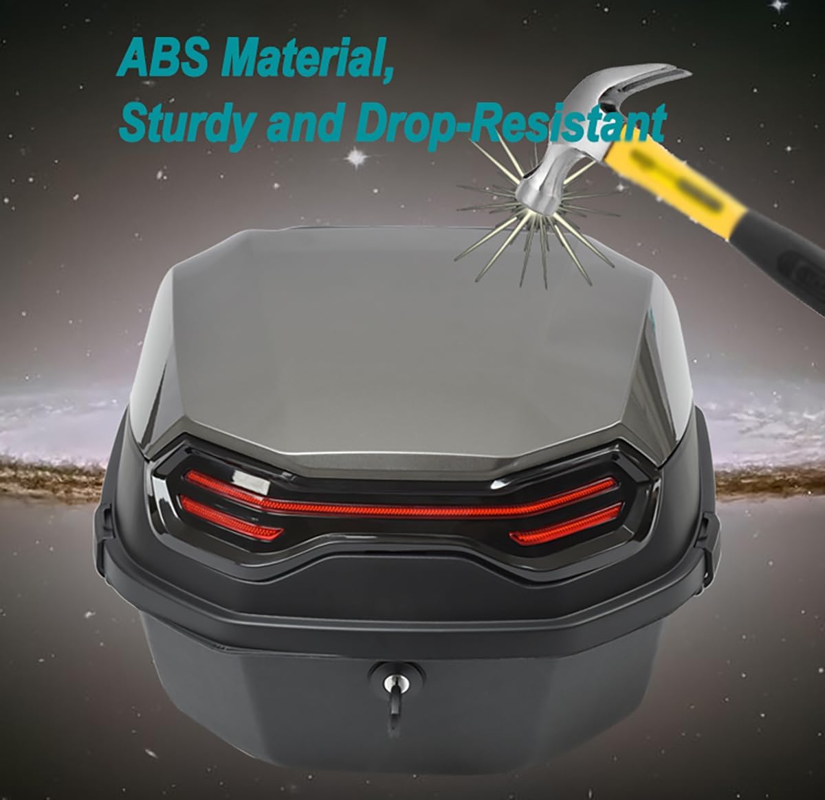 Motorbike Top Box Features:Exquisite Tail Box, convenient storage.Increased storage space, more convenient storage, chargers, ponchos, water cups, etc. can be put whatever you want.Waterproof, shockproof and dry in wet weather conditions. Protect items from sun, rain and wind.Night warning light, red night reflector makes night travel safer.Safety locking hook, safe and anti-theft, easy to use!Universal Mounting Holes: As long as your motorbike has a tailstock, it can be installed!Product Specifications.- Product Name: Universal motorbike Tail Box- Material: High quality ABS+PPPackage Includes.- 1 × Motorcycle boot tail box- Installation toolNote:Our motorcycle tail box fits for most models of motorcycle which has a rack, please make sure that your motorcycle with a luggage rack before installation.Note:1. Due to the light and screen setting, the color of the item may be slightly different from the pictures.2. Please allow slight dimensional difference due to the different manual measurement.