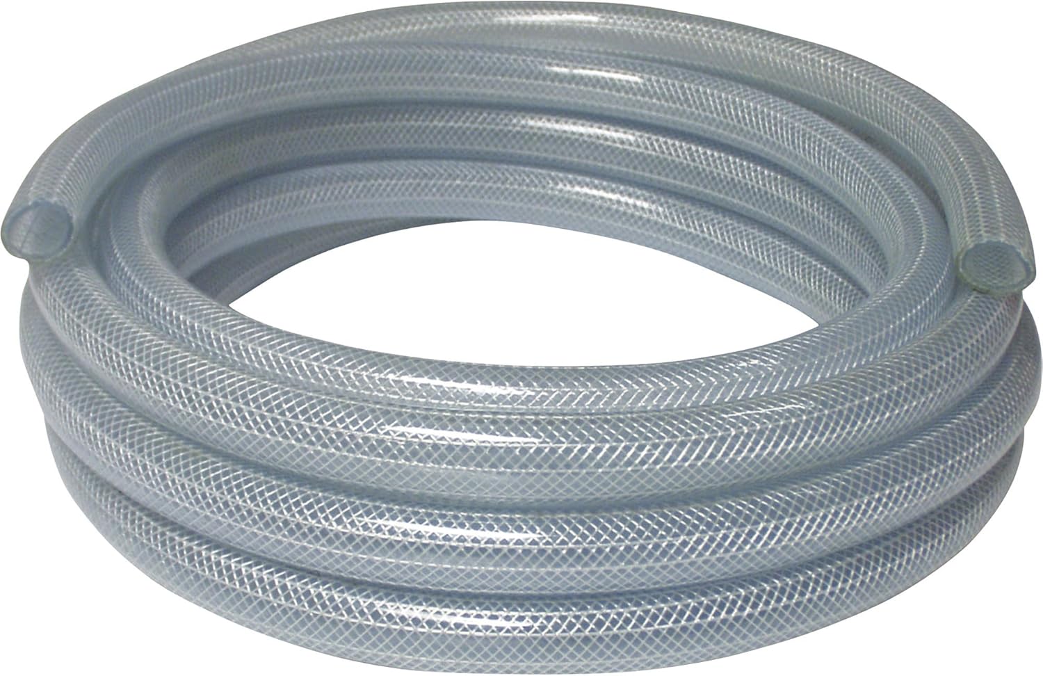 This clear polyvinyl hose is reinforced with synthetic cord to withstand higher working pressures. Perfect for use as an air, water or pneumatic line. Hose construction is formulated to comply with FDA requirements. Works from -20°F to 150°F. Not for transfer of anhydrous ammonia.