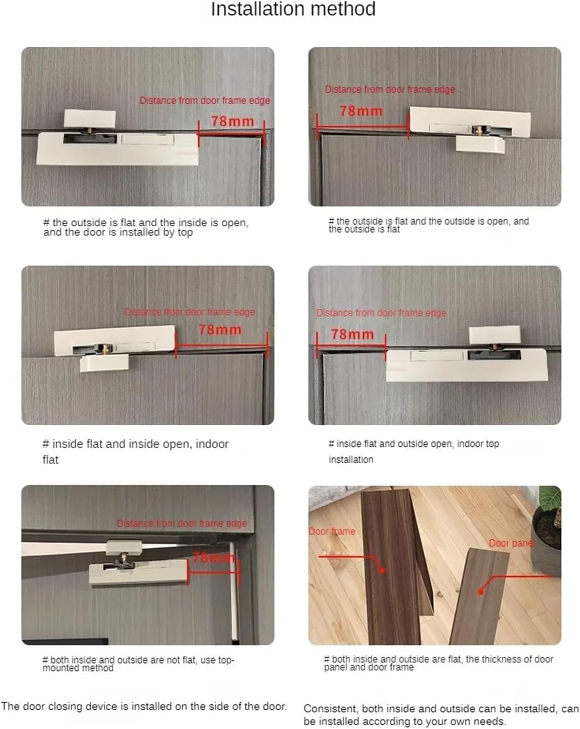 Door ClosersMaterial : Aluminum Alloy Type : Door Closers model : Gate stoppertexture of wood : Cast aluminumColor classification : Black and whiteAdjust the interval : Section 1Whether the strength can be adjusted. : Adjustable strength