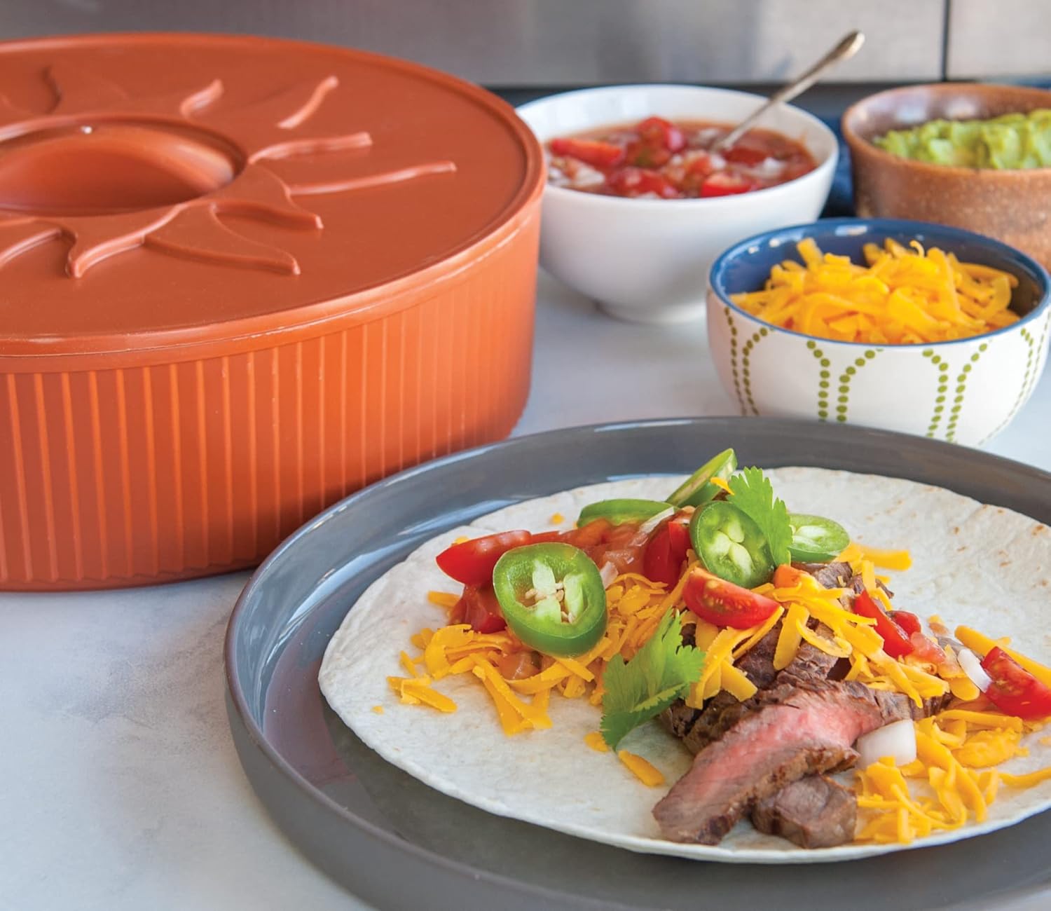 Uno Casa Cast Iron 10 Inch Tortilla Press - Pre-Seasoned Quesadilla Maker, Tortilla and Roti Maker With Bonus 100 Pcs Parchment Paper - Pataconera for Flour Tortilla, Tawa or DosaUno Casa Cast Iron 10 Inch Tortilla Press - Roti and Tortilla Maker - Bonus 100 Pcs Parchment Paper - Pataconera for Flour Tortilla, Roti, Tawa or DosaNordic Ware Microwave Tortilla and Pancake Warmer, 10-Inch,OrangeWhether keeping pancakes ready for the breakfast table for those big weekend brunches or having warm tortillas on standby for your upcoming fiesta, the Nordic Ware Tortilla & Pancake Warmer will be your sidekick! Made from BPA and melamine-free plastic, the container is made to be microwave-safe, and it is perfect for holding crepes, pita bread, and waffles to keep warm as well. Proudly made in the USA, the Nordic Ware Tortilla & Pancake Warmer is a reliable tool for those big breakfasts or outdoor dinner parties! Nordic Ware Tortilla & Pancake Warmer Features: Use to keep tortillas, crepes, waffles, pancakes, naan, and pita warm Heats everything inside in about 30 - 45 seconds Dimensions (L x W x H): 10โ x 10โ x 2.6โ BPA and melamine free plastic Dishwasher safe or wash by hand 5-year warranty Weight: 1.5 lbs. Proudly made in the USA