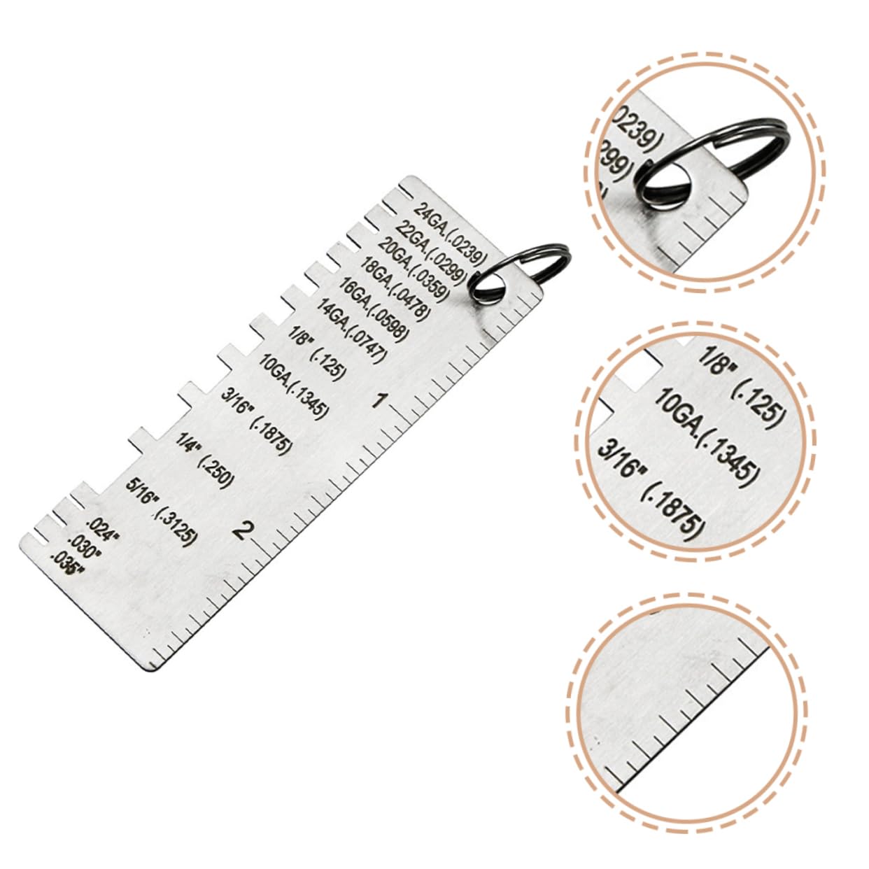 Package List 15 x Welding thickness gauges Characteristics -Material:Stainless steel thickness gauges -Size:7.20X2.50X0.10cm/2.83X0.98X0.04in metal thickness gauge tool -Color:Silver metal thickness gauge - workmanship, to fade, deform or break, you can avoid unnecessary mistakes by using it welding tools and accessories. - Made of stainless steel materials, anti- and corrosion resistance, for long time using wire gauge measuring tool. - You can determine the thickness before welding or processing and measure the welding thickness quickly and accurately measuring tools. - Compact size with light weight, easy to take and use, can better fit your demands when having welding work welding accessories. - Clarity and easier reading sizes and numerals are etched into the surface, can let you have accurate data thickness gauge.Goods Informationwelding accessories Made of stainless steel materials, safe and for long time using.marking gauge This sheet metal gauge is a practical and necessity checking tool for you, it is very useful and helpful for checking metal sheet wire size before welding or working.metal measuring tools You can get a precise and accurate of welding, avoiding unnecessary mistakes