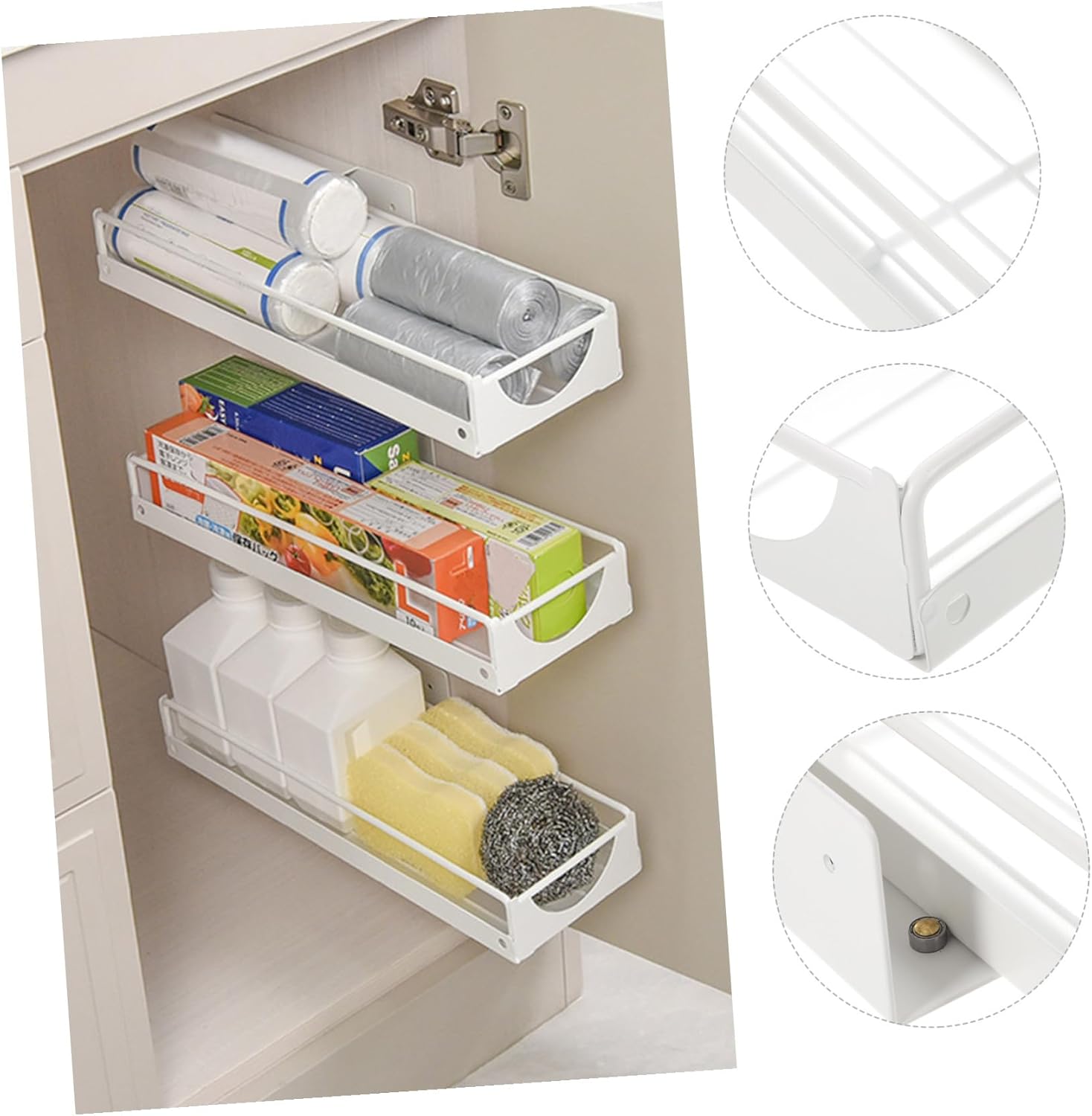 Package List 1 × Storage Organizer Rack 1 × Glue 2 × Screws 2 × Expansion Tubes 4 × Screw Nuts Features - Size: 35.00X12.00X5.50cm/13.76X4.72X2.16in under sink shelves -Color:White slide out shelves -Product Info:Drawer storage rack -Material:Carbon steel storage under sink - The bottom slide-out drawer design will make picking and taking more flexible and easier in space pull out sink storage rack. - Place the organizer rack under cabinet or sink, it will be suitable organizer helper for bathroom or storage holder. - This kitchen sink organizer is great as housewarming , Thanksgiving, Christmas and Holidays gift for families and friends under sink pull out. - Not only maximizes storage space utilization, but also makes the bottles and jars more neat and orderly cabinet shelf organizers - The carbon steel made under sink organizer rack is sturdy and reliable, not easy to rust or break sink storage rack holder.Goods Descriptionkitchen organizer Enough capacity to store many seasoning bottles and kitchen supplies.drawer organizer This is a good helper for kitchen.pull out under sink organizer Do you want to have a kitchen storage rack to store your seasoning bottles and other items? Then, our storage rack is carefully prepared for you