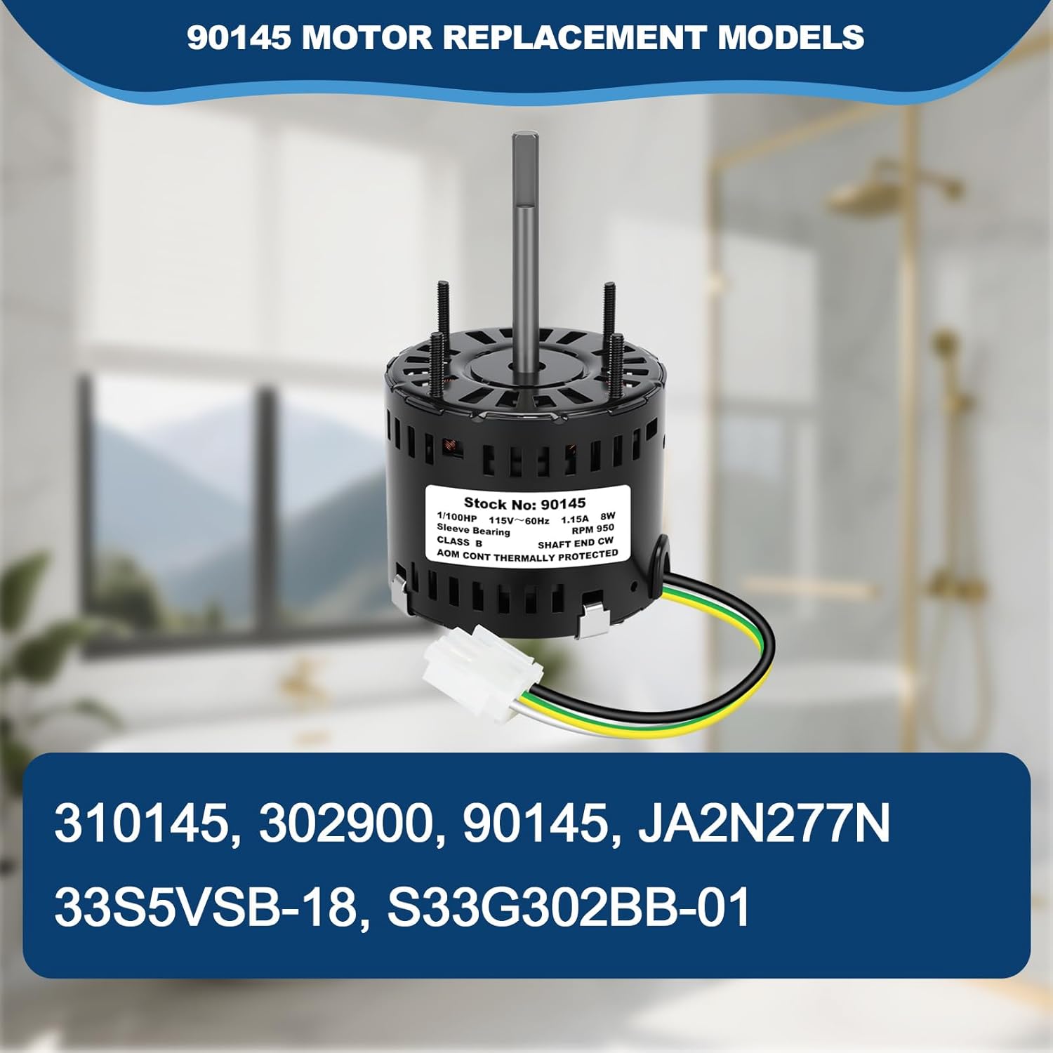 Upgraded Replacement Exhaust Fan Motor 90145 Compatible with 310145, 8 Watt 115V 60Hz, 950 RPM CWSE – Quiet Operation for Bathroom Vent Fan, Smooth Performance and Low Noise Design