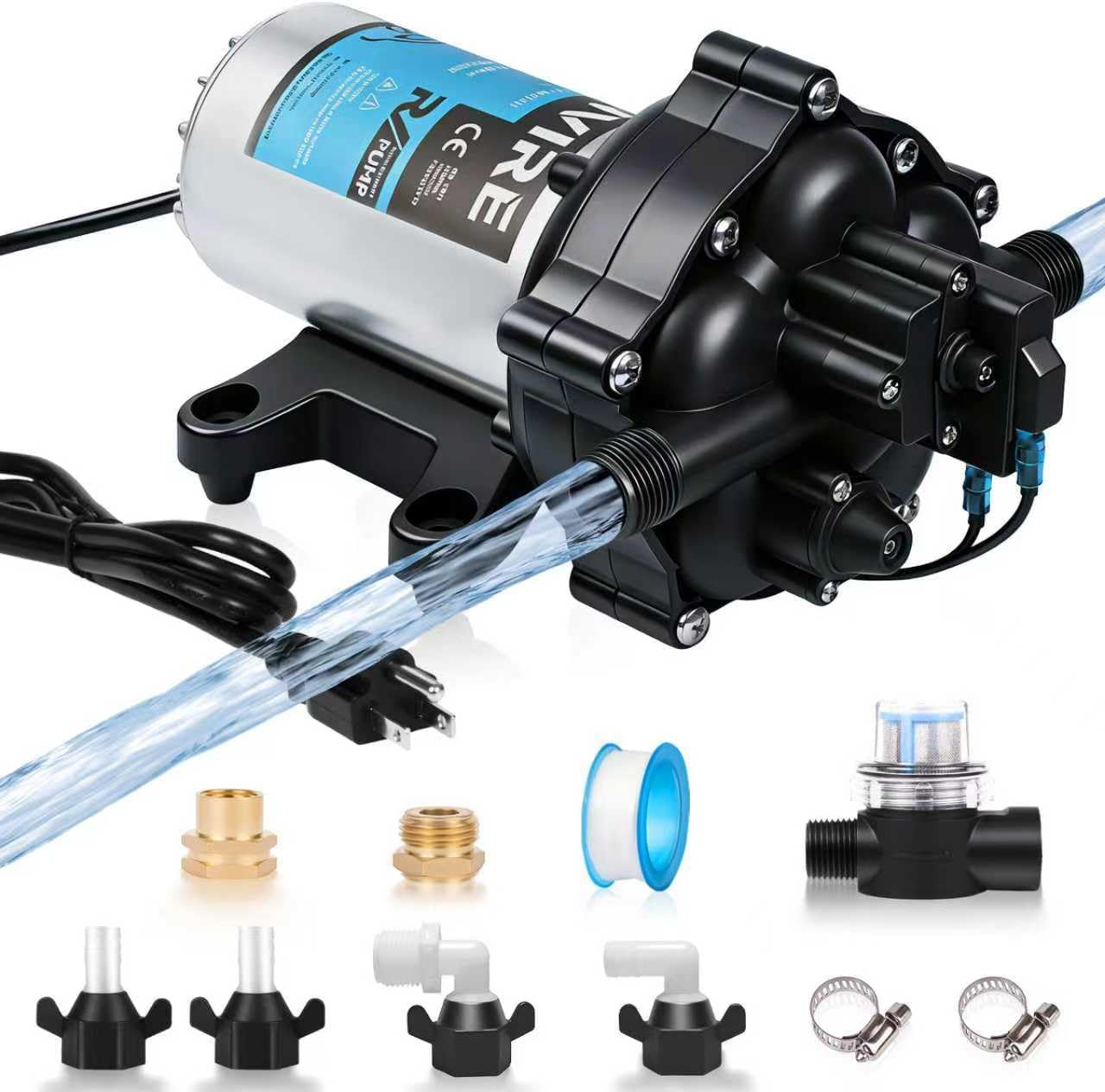 | Included Components | 12V DC RV Fresh Water Pump Kit(3 x 1/2" hose adaptor, Inlet Water Strainer, Teflon Tape) |