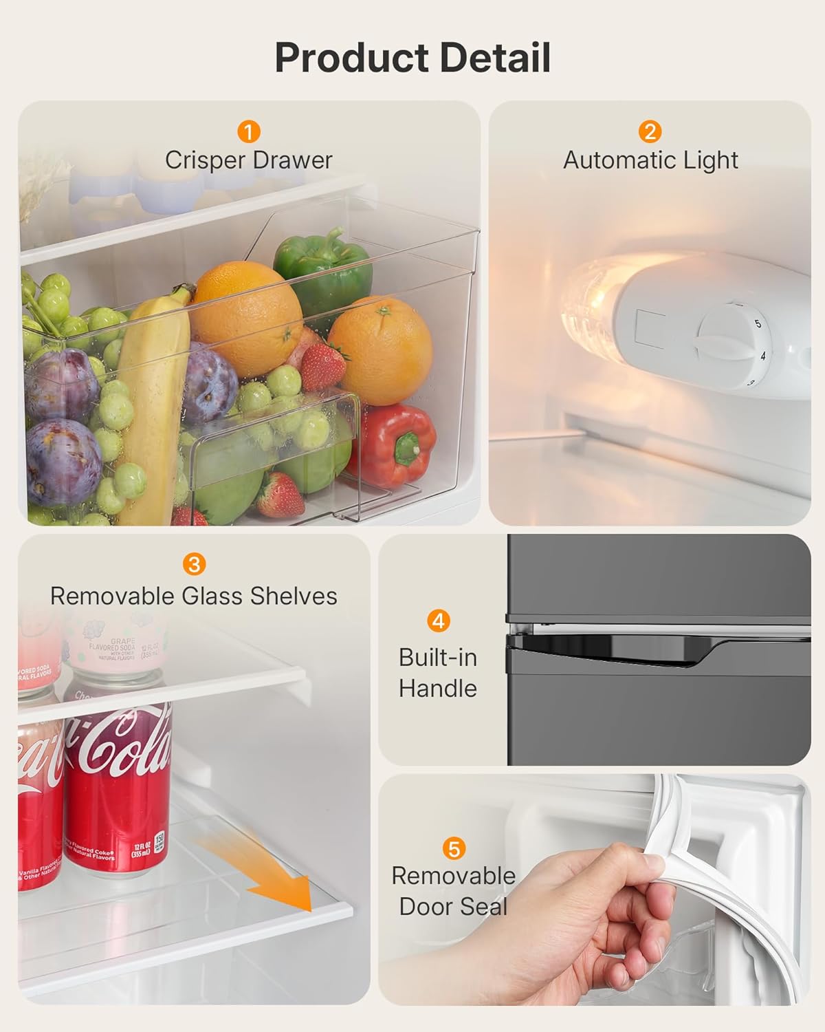 | Included Components | Crisper Drawer *1; Adjustable Glass Shelf *2; Ice Scoop *1; Ice Cube Tray *1; Egg Holder *1 |