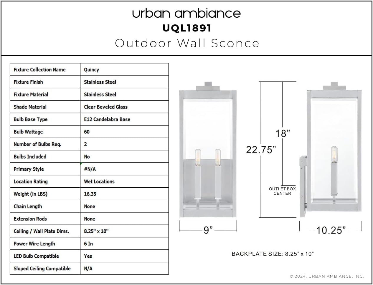 | Color | Stainless Steel, 23''H Wall Sconce |