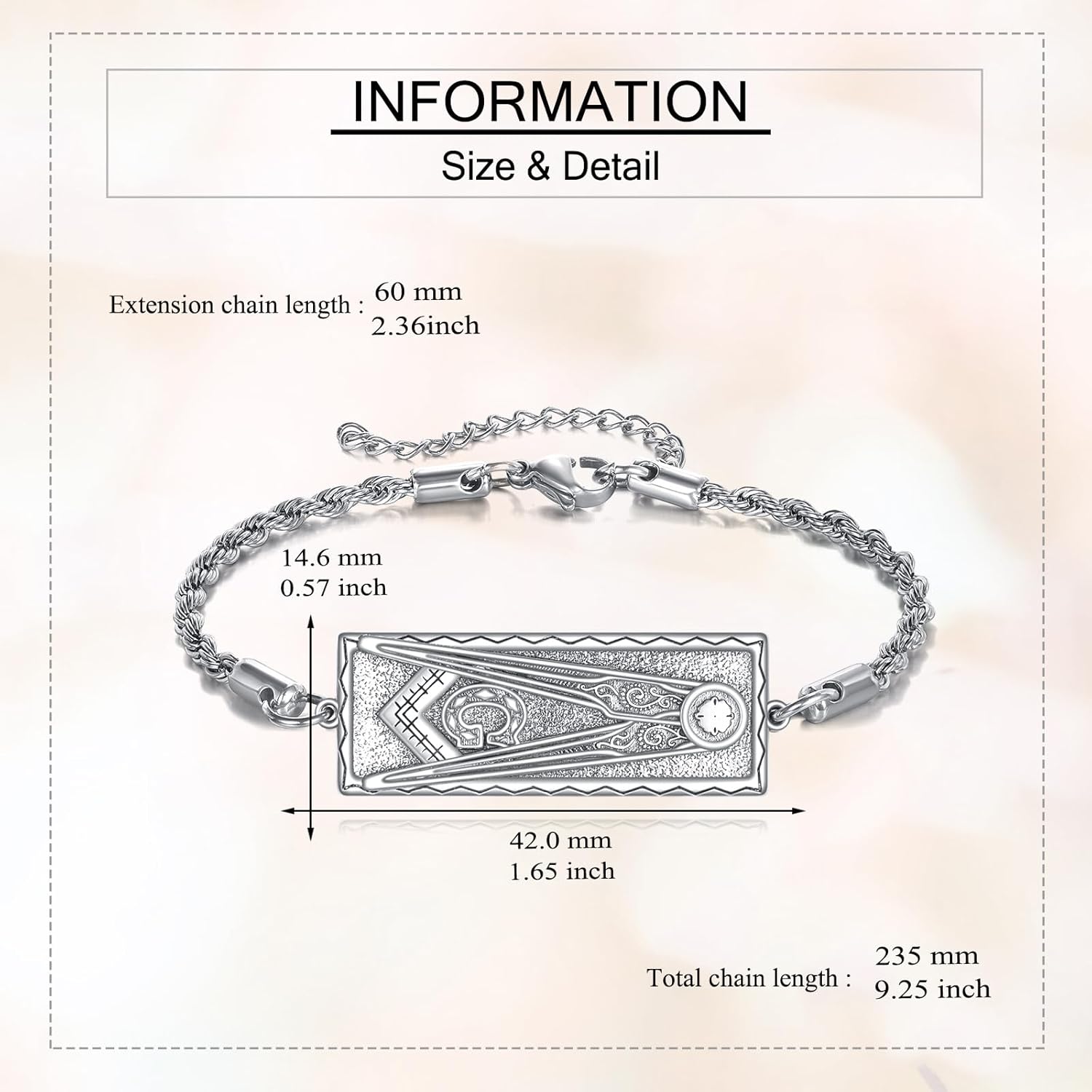 URONE Masonic Bracelet 925 Sterling Silver Freemason Bracelet Masonic Jewelry Gifts for Women Men
