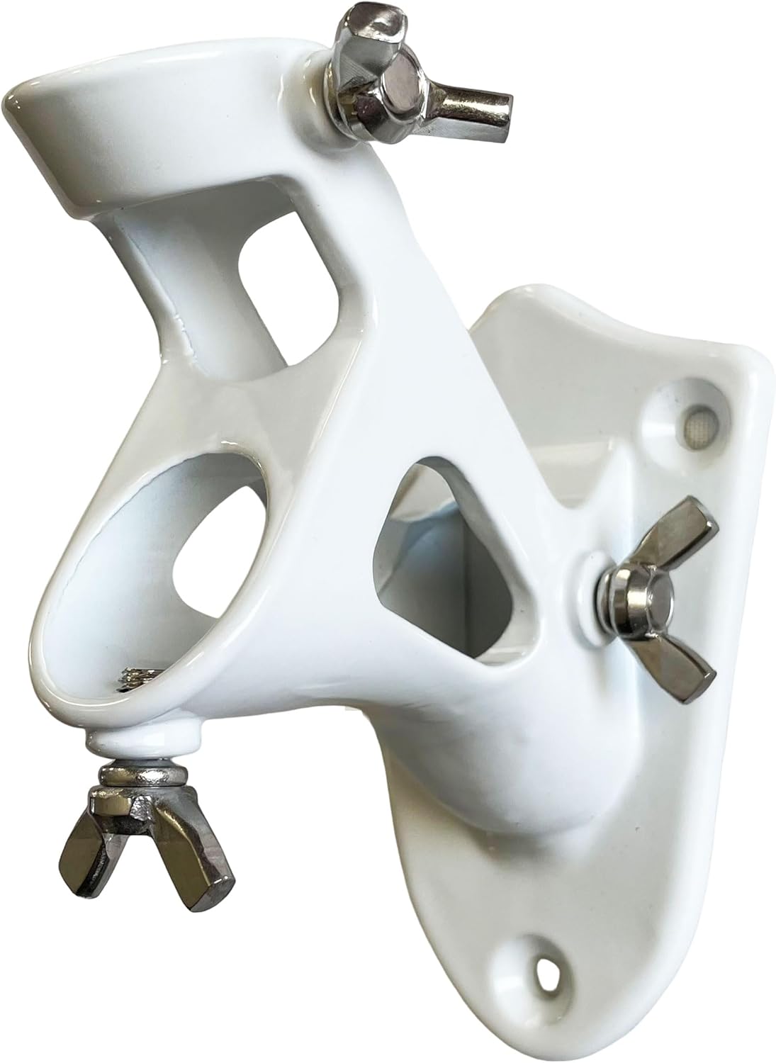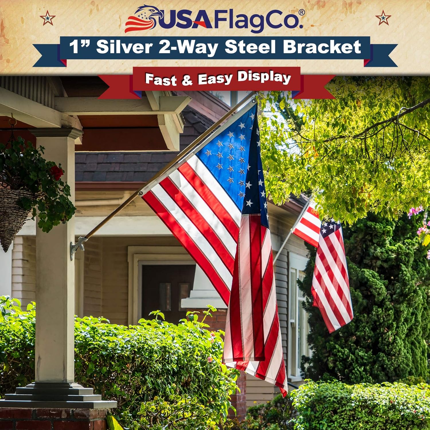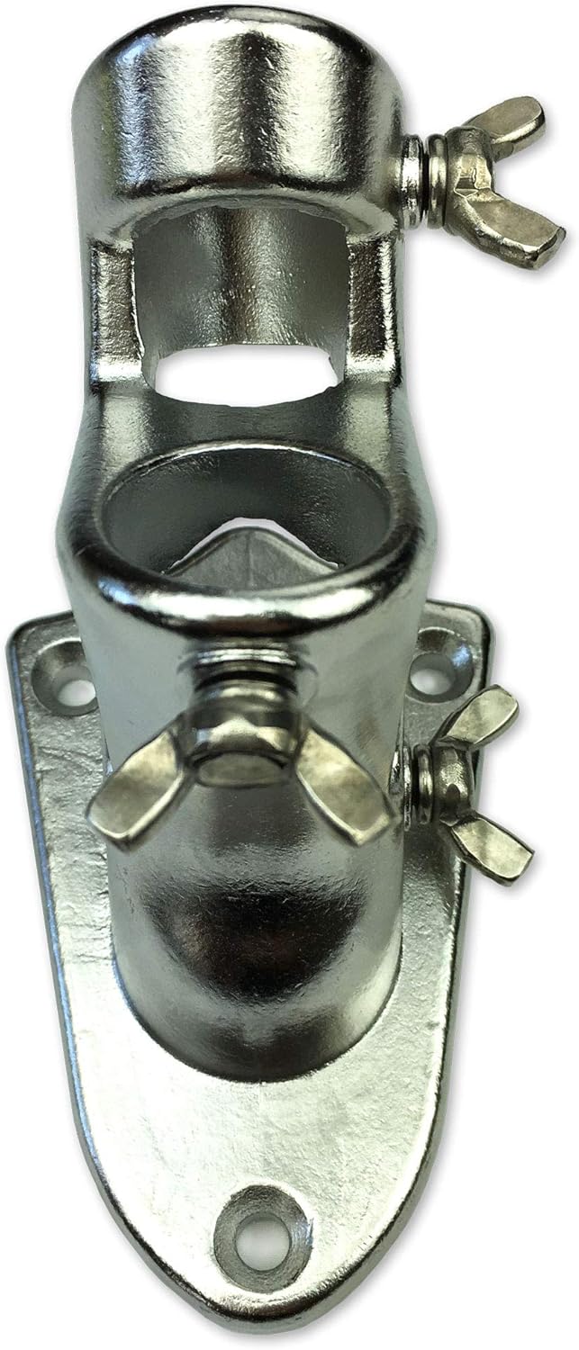 Unmatched Durability and VersatilityIntroducing the TITAN 2-Way Easy Display Flagpole Bracket, crafted from premium stainless steel for exceptional strength and longevity. Designed to withstand harsh weather conditions, including strong winds, intense sun, and moisture, this bracket is the perfect choice for both residential and commercial use.Key Features:Weatherproof Construction: Made of durable stainless steel with a black powder coating finish for maximum resistance to rust, cracking, peeling, marring, and corrosion.Versatile Display Options: Easily switch between horizontal 45-degree (Half-Staff) and angled 90-degree (Traditional Display) flagpole positions to suit your needs. Easy Installation: Includes mounting screws and hardware for a quick and hassle-free setup. Secure Flagpole Attachment: Equipped with thumb screws to securely hold your 1-inch diameter flagpole in place. Ideal for Residential and Commercial Use: Perfect for homes, estates, gardens, porches, and businesses. Elevate Your Outdoor SpaceEnhance the look of your property with the TITAN 2-Way Easy Display Flagpole Bracket. Its sleek design and superior durability make it a must-have for any flagpole patriots.Order yours today and experience the difference!