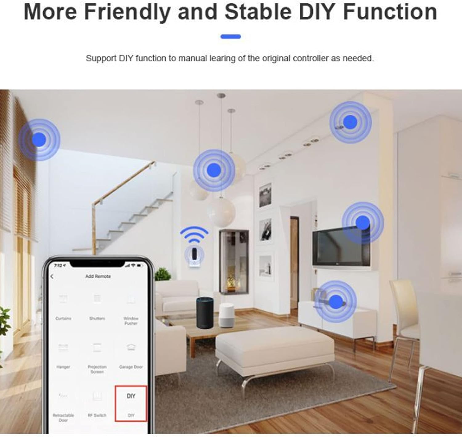 • Universal Compatibility: An IR RF Wifi remote control enables your smartphone to become a universal remote control, it support IR 38KHz and RF 433.92MHz, supporting various IR and RF household appliances.