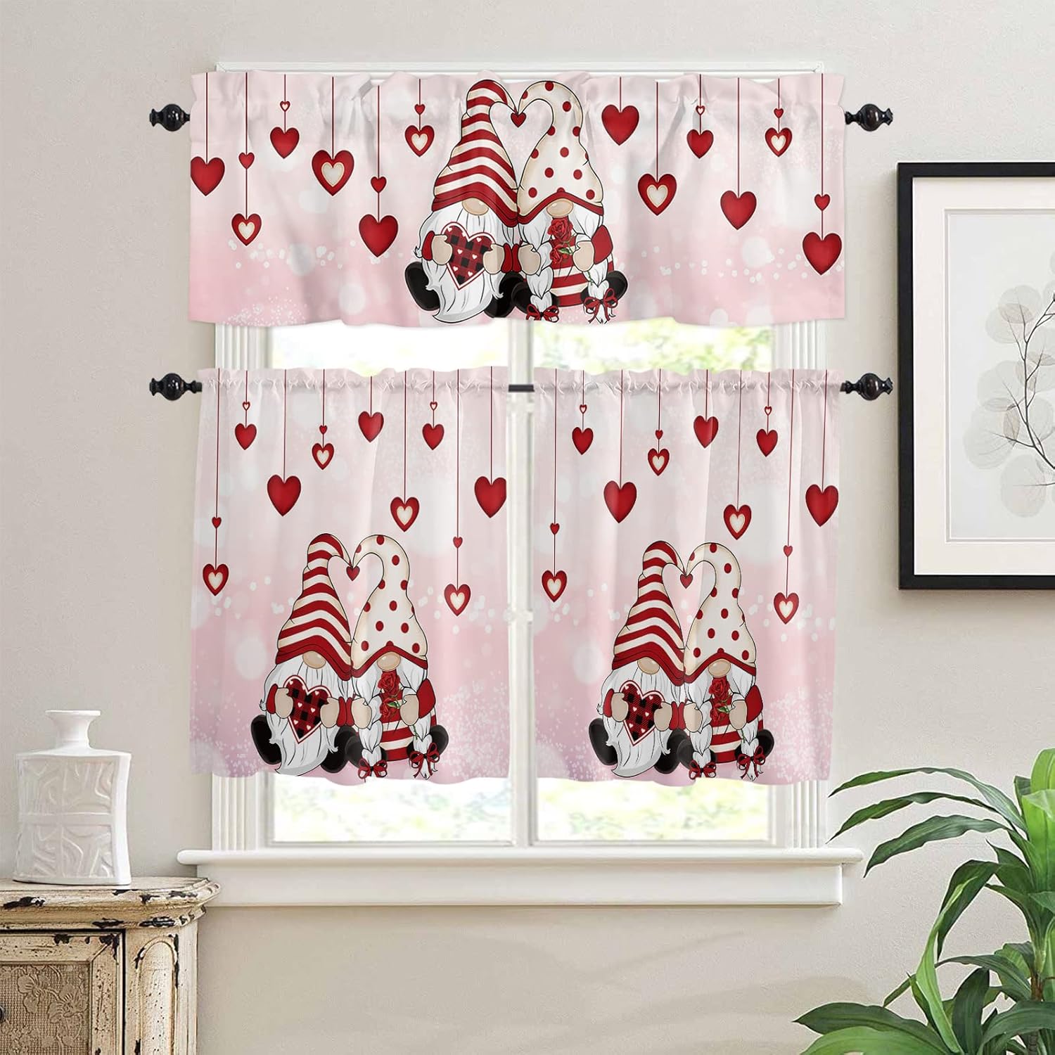 Valentines Day curtains and valance set can gracefully decorate kitchens, bedrooms, bathrooms, laundry rooms, study rooms, game rooms, living rooms, offices, sun rooms, sliding doors, patio doors, french doors, and more.ღSound Reducing Curtains Set For BedroomBedroom curtains 3 panel sets cortinas para dormitorio can reduce the noise of people and vehicles outdoors, provide you with a comfortable sleeping environment, and are suitable for houses close to the road.ღLight Filtering Curtains Set For Living RoomWindow valances for living room cortinas para sala can adjust the light, block the strong light of the sun from hitting the furniture, and prolong the service life of the furniture.ღEnergy Saving Curtains Set For KitchenCoffee kitchen curtains cortinas para cocina can play a role in balancing the temperature, providing coolness in summer and warmth in winter, creating a suitable cooking environment for you.ღPrivacy Curtains Set For Bathroom WindowsApplying farmhouse curtains cortinas para habitacion to bathroom windows or bathroom door windows can provide plenty of privacy for your shower or changing clothes.ღDust Curtain Set For CabinetHanging modern curtains on closets, wardrobes, bookcases, and bookshelves can effectively avoid dust from falling on items and keep them clean.ღDurable Curtains Set- The four edges of the Valentines valance for window are sewn with double thread.- Aesthetic Valentine curtains rod pockets should not crack when sliding with reinforced stitching.- Kitchen sink curtains sets for windows can withstand prolonged sunlight exposure and are not prone to discoloration and wear.ღExquisite GiftModern kitchen curtains are the perfect gift for family and friends for Christmas, Halloween, Valentine's Day, Easter, Thanksgiving, Independence Day, St. Patrick's Day and many more.