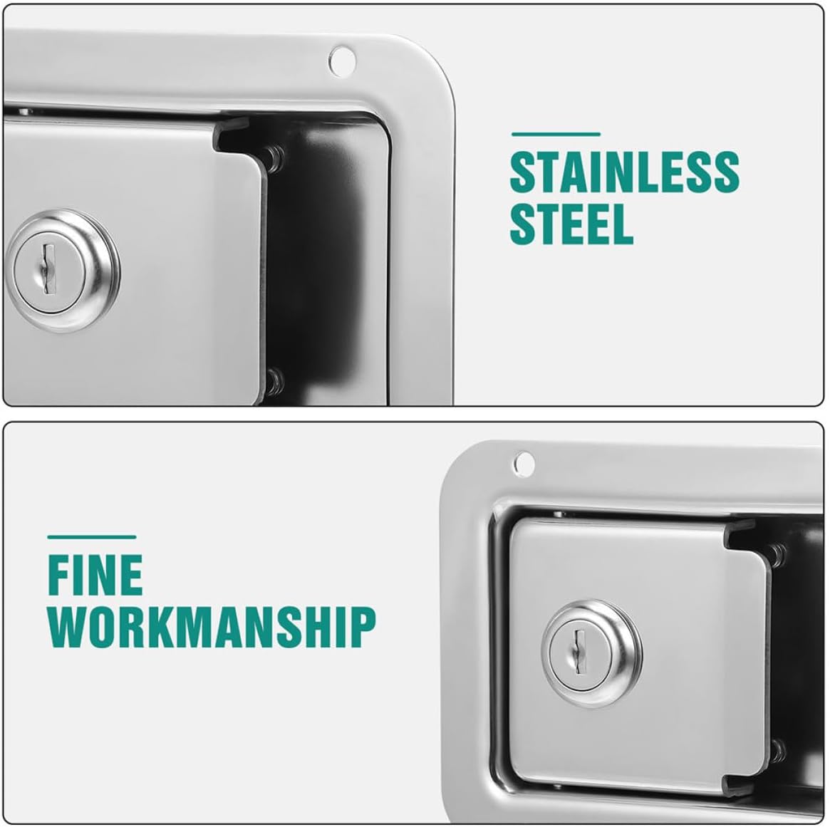 Package List 2 x trailer locks Characteristics -Size:12.00X9.30X4.00cm/4.72X3.65X1.57in -Material:Stainless Steel -Color:Silver -great build: made from highstrength materials, this panel lock ensures durability and performance for your trailer or special vehicle -Quick and easy installation: designed for easy installation, this lock can be quickly replaced, saving you time and effort trailer latch lock -Product Info:Panel lock -Sleek appearance: the lock features a sleek and stylish design that enhances the overall look of your vehicle latch panel for rv - use: suitable for a wide range of trailers and special vehicles, making it a and practical choice truck trailer door latch lock -Enhanced safety: provides additional security for your trailer or special vehicle, ensuring your valuables are protected lockGoods Descriptionstainless steel paddle latch Whether you're securing a trailer door or a box, this latch provides reliable performance.rv paddle latch This trailer handle lock is essential for maintaining the security of your vehicle's storage compartments.paddle lock replacement The stainless steel construction ensures durability and resistance to corrosion, making it ideal for use in various weather conditions
