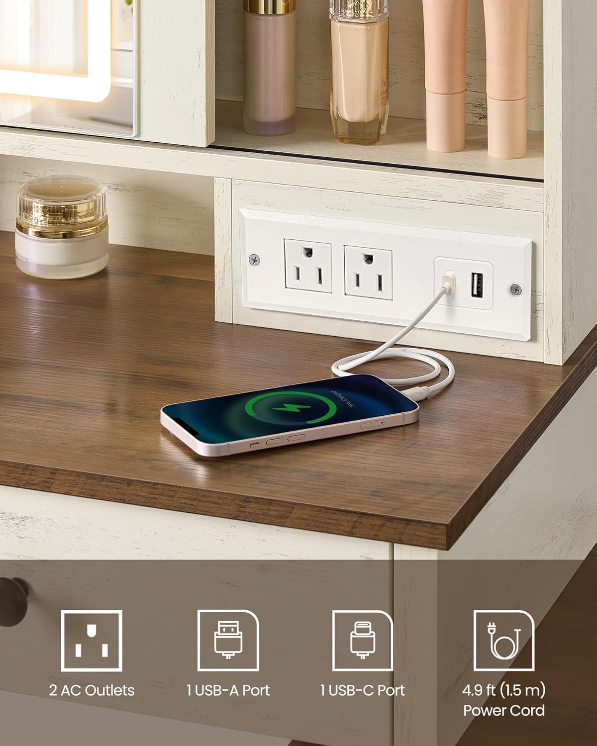 | Item Type Name | Farmhouse Makeup Vanity with Stool, Charging Station, 2 Drawers, Jewelry Storage, for Bedroom, Rustic White and Honey Brown URDT135W01S |