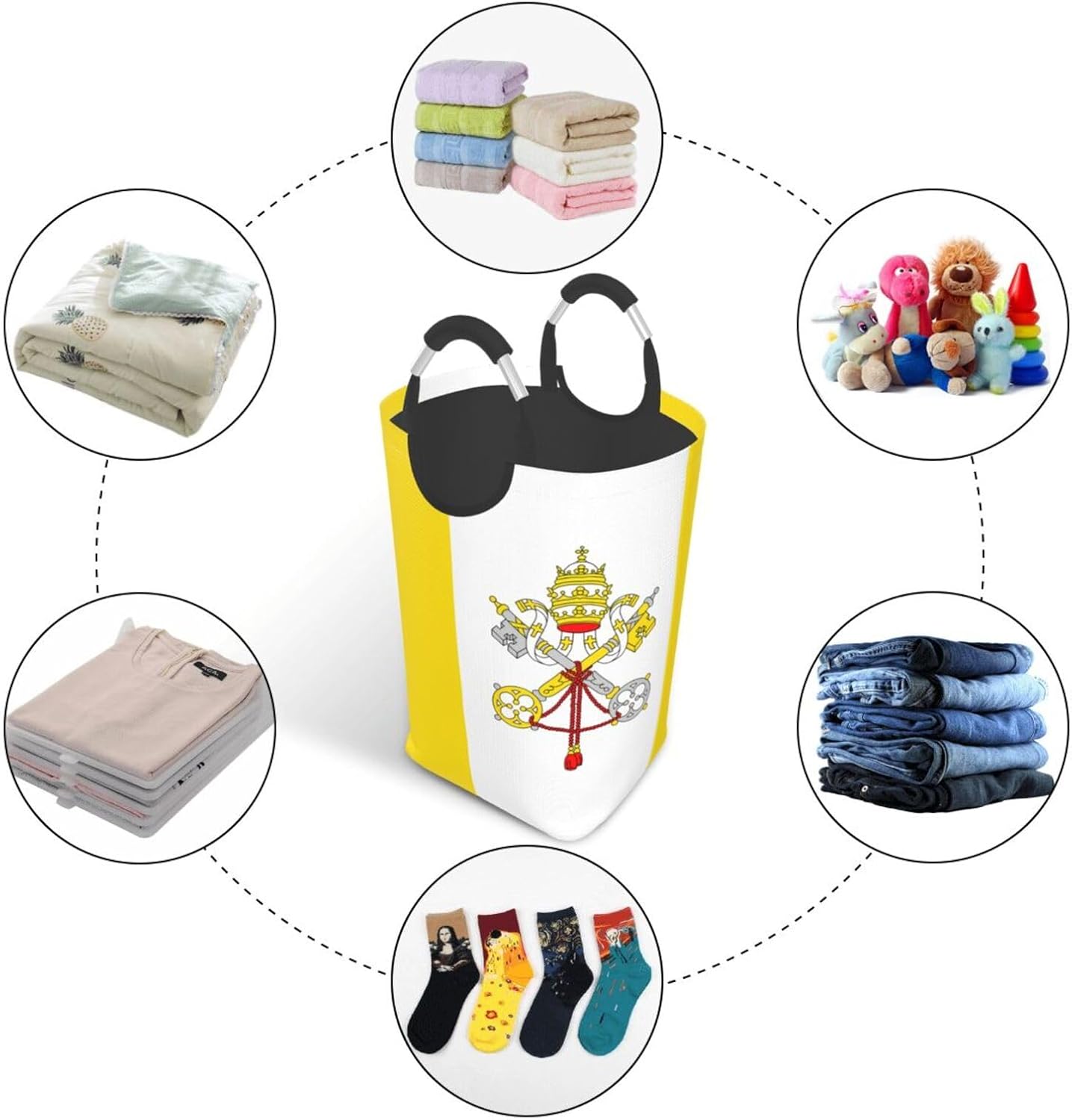 Our Vatican flag dirty clothes storage bag is made of polyester, which is lightweight and flexible. It can maintain a stable shape even under heavy pressure and collision. At the same time, the incorporation of Oxford cloth material significantly improves the durability of the product, and it is resistant to wear, bumps and pulling. The storage bag is designed with a large capacity, which can easily carry winter clothes, daily clothes and a variety of sundries. It is easy to carry and store, and fits tightly into the gap of the suitcase after folding. The aluminum handle is sturdy and reliable, supports hanging, and is suitable for a variety of places. In terms of design, it adopts leak-proof technology, combined with waterproof coating and precision sewing, which is effectively waterproof. The exterior uses cutting-edge transfer technology, and a PE board support is added at the bottom to ensure stable load-bearing and prevent tipping. This storage bag is practical and easy to use, and is an ideal choice for travel and home.