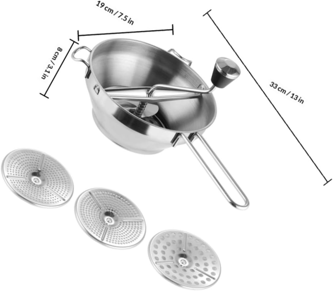 Package List 1 x Set of Potato Ricer Characteristics -Color:Silver -Product Info:Food mixer -Material:Stainless Steel -Size:33.00X19.00X8.00cm/12.97X7.47X3.14in -The material is good, and the workmanship is fine, giving you an excellent sense of use. -The workmanship of this product is perfect, and you will have a good experience in using it mash potatoes crank. -The handle is comfortable to grip, moderate friction and stable operation mashed potatoes masher. -This potato masher is very easy to clean, evenly curved holes, fine mashing stainless steel potato ricer. -The Potato Masher can be used to mashed potatoes, sweet potatoes, yams, pumpkins, etc potato grinder.Goods Informationpotato masher cooking utensil Made of stainless steel, it is easier to clean than other .potatoes masher pressed You can use it to make truly delicious meals for you and your family.hand masher for food The handle is comfortable to grip, moderate friction and stable operation.food masher tool It is very suitable for making pumpkin, carrot, potato and other fruit puree and vegetable puree.mash potatoes masher Made of food-grade , safe and healthy.potato masher kitchen tool Mashed potatoes are super easy