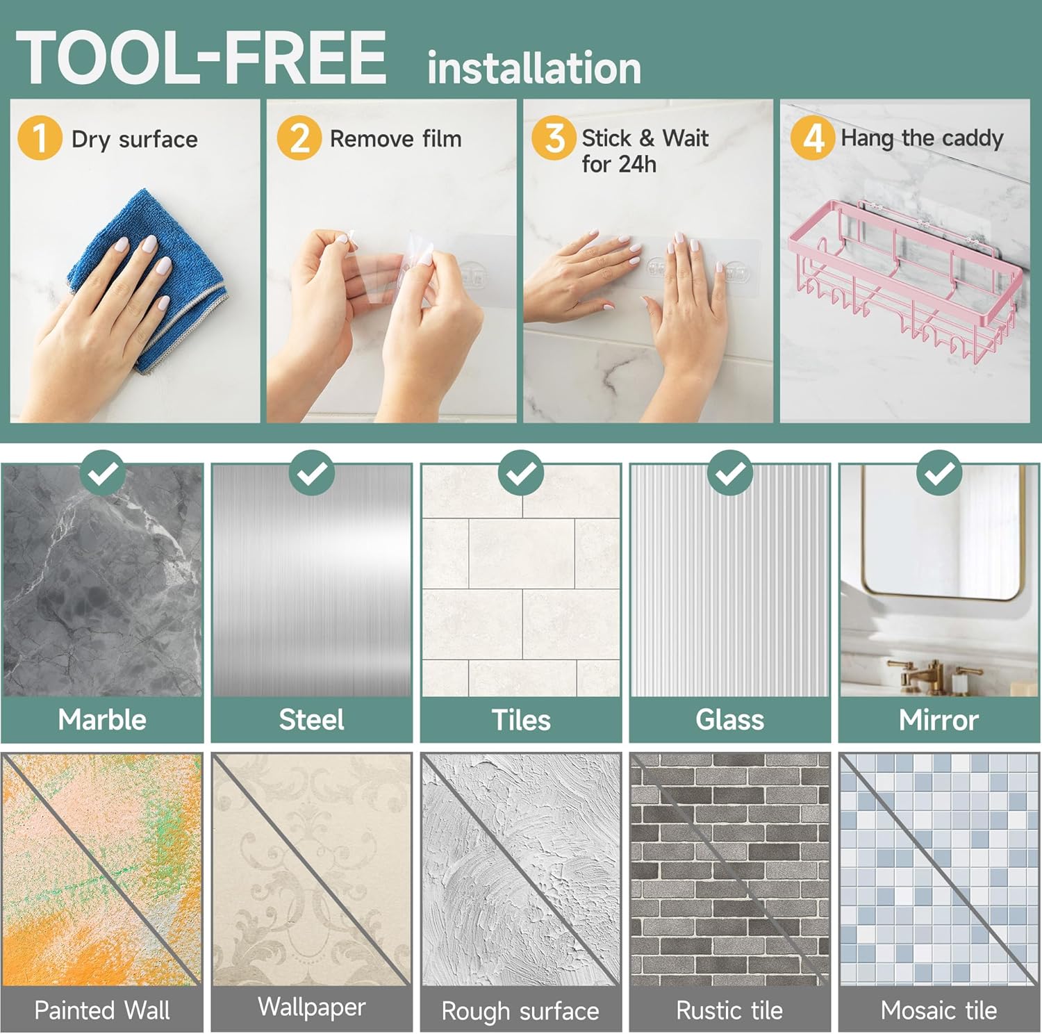 | Included Components | Adhesive Hooks, Shower Caddies, Soap Holder, Toothbrush Holder |