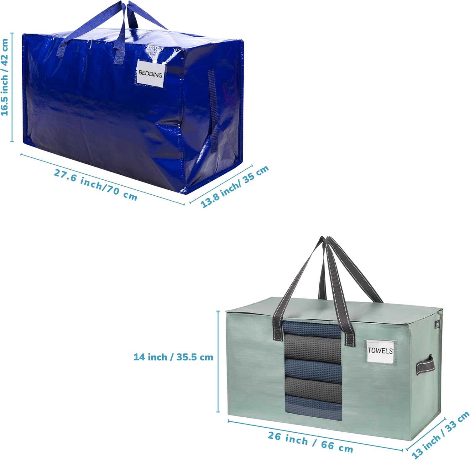 VENO Commitment: It is our mission and commitment to reduce our impact on the environment in order to make a cleaner, more livable future. Our high-quality, sustainable products are manufactured by maximizing the use of post-consumer resources which saves plastic from ending up in oceans, lakes, and landfills. Made for the shopper with a soft spot for our planet who enjoys having convenient, functional, and stylish products in their arsenal. Please use as much as possible to help protect our environment.The Strongest Moving Products: VENO Storage Moving Bags are incredibly durable. Products are made from high-grade polypropylene woven material, contain reinforced poly webbing handles for heavy-duty use, and include a premium dual tab zipper. Move easier with our strong and sturdy products that are the perfect moving box alternative!Extremely Versatile: VENO Moving and Storage Bags are multi-functional and can be used for different purposes such as moving, storing, organizing, transporting, traveling, or camping. They are a fantastic alternative to traditional laundry baskets and ideal for college students, families, and frequent travelers. Make your life easier with our products that are lightweight, water-resistant, easy to clean, and foldable for easy compact storage.What You Get:6 x VENO Storage Bag with Sturdy Side Handles (Blue)8 x VENO Moving Bags with Sturdy Side Handles & Window (Light Green)3 Month Warranty: Our unique and classic bags come with a 90-day warranty. Contact us for any problem and we will ship a new bag FREE of charge or provide you a better solution. Customers are our top priority. If you are not happy, we are not happy!