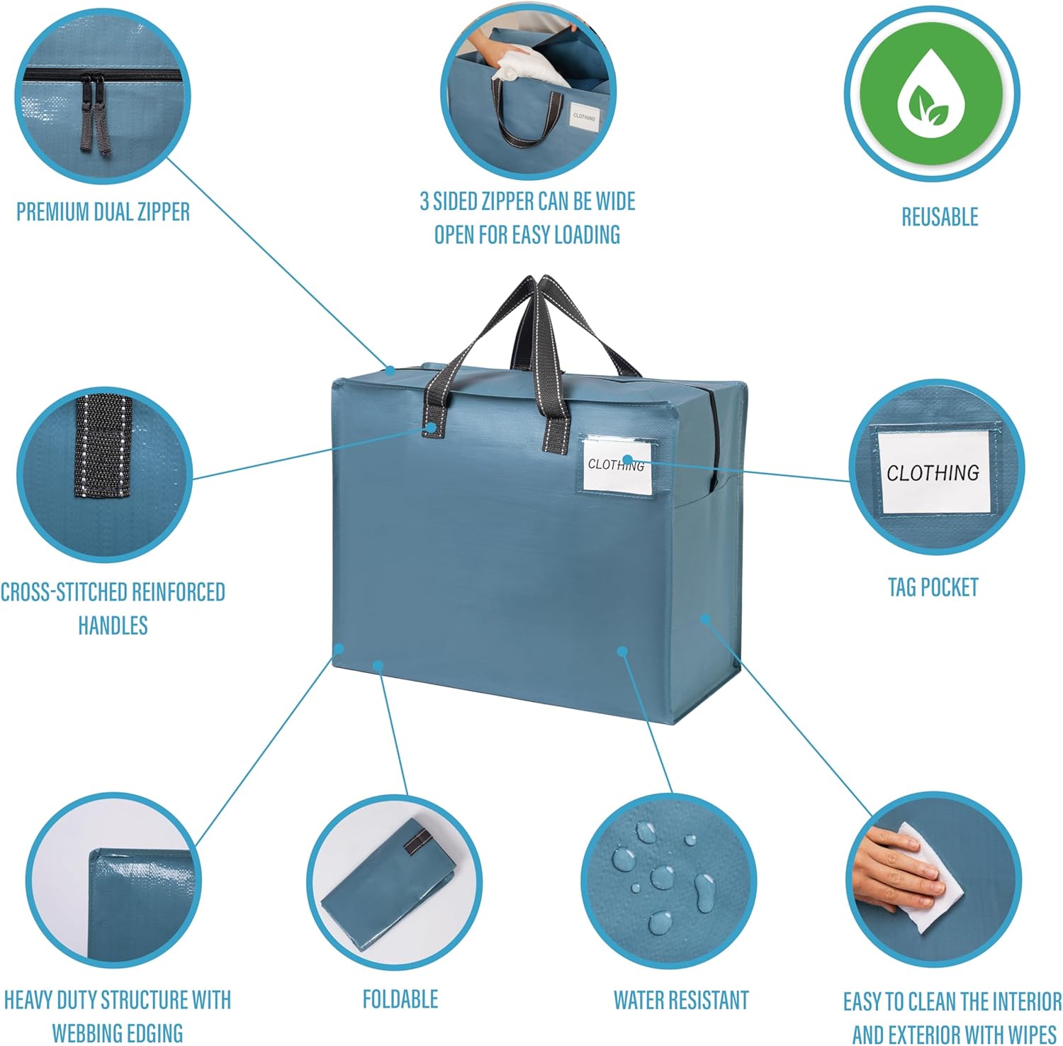VENO Commitment: It is our mission and commitment to reduce our impact on the environment in order to make a cleaner, more livable future. Our high-quality, sustainable products are manufactured by maximizing the use of post-consumer resources which saves plastic from ending up in oceans, lakes, and landfills. Made for the shopper with a soft spot for our planet who enjoys having convenient, functional, and stylish products in their arsenal. Please use as much as possible to help protect our environment.The Strongest Moving Products: VENO Storage Moving Bags are incredibly durable. Products are made from high-grade polypropylene woven material, contain reinforced poly webbing handles for heavy-duty use, and include a premium dual tab zipper. Move easier with our strong and sturdy products that are the perfect moving box alternative!Extremely Versatile: VENO Moving and Storage Bags are multi-functional and can be used for different purposes such as moving, storing, organizing, transporting, traveling, or camping. They are a fantastic alternative to traditional laundry baskets and ideal for college students, families, and frequent travelers. Make your life easier with our products that are lightweight, water-resistant, easy to clean, and foldable for easy compact storage.What You Get:4 x VENO Storage Moving Bag with Backpack Straps (Windowpane)4 x VENO Moving Bags with Cross-stitched Handles (Light Blue, 27 Gallon)3 Month Warranty: Our unique and classic bags come with a 90-day warranty. Contact us for any problem and we will ship a new bag FREE of charge or provide you a better solution. Customers are our top priority. If you are not happy, we are not happy!